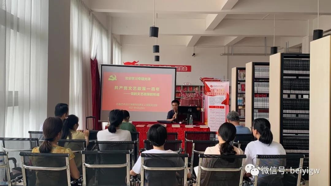 在全党如火如荼地开展党史学习教育之际,2021年5月28日下午,马克思主义学院组织全体党员、教师,在学校图书馆党史阅读角开展思想政治理论课教师理论学习暨党史学习专题党课活动,由马克思主义学院罗喜江教授作题为《共产党文艺政策一百年——中共文艺政策的形成》的党史知识培训。