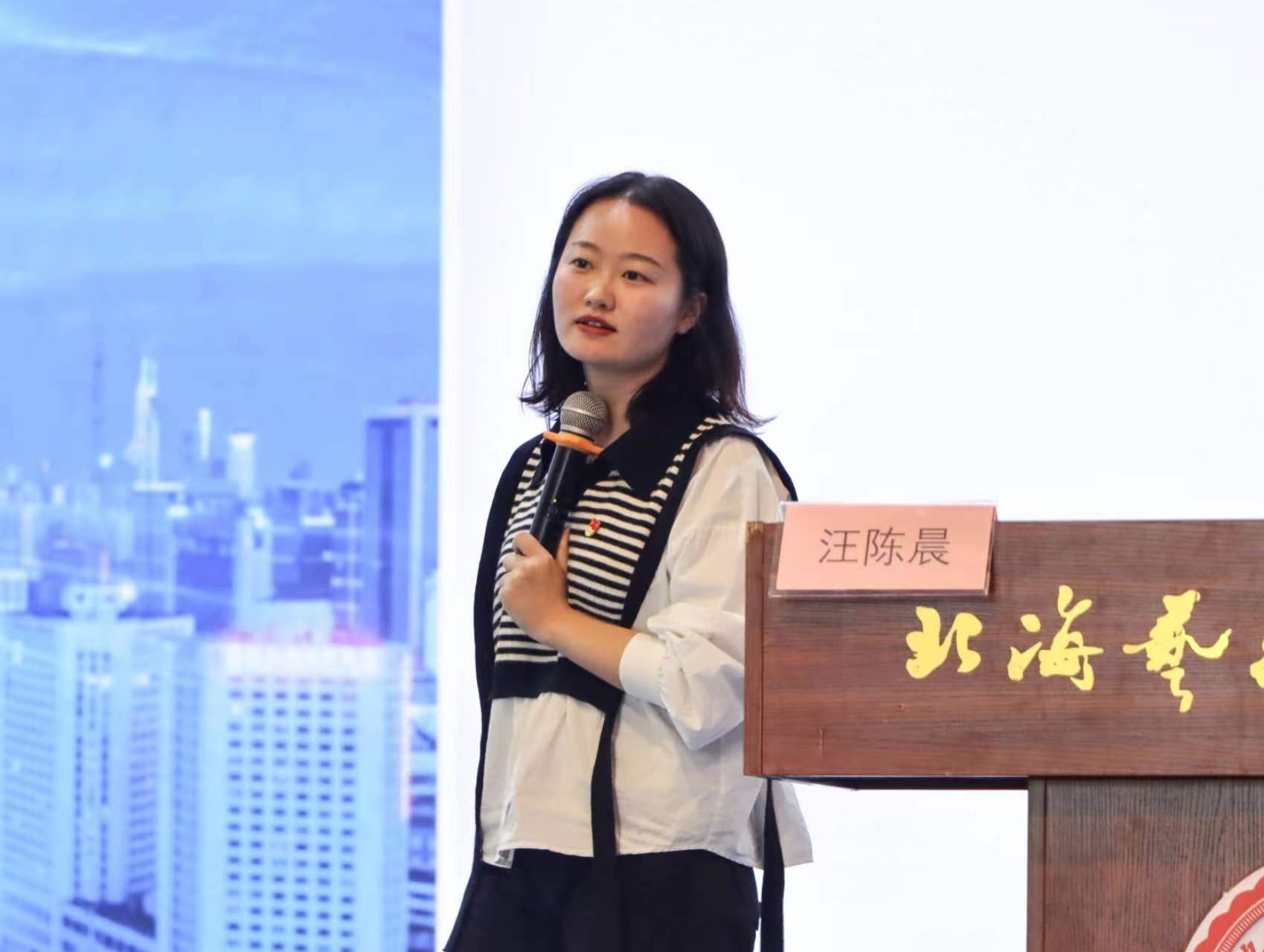 接下来进入仪式第四项,由马克思主义学院汪陈晨老师进行专题教学,她为在座学员详细介绍了习近平新时代中国特色社会主义思想。包括习近平新时代中国特色社会主义思想的创立背景、时代课题、主要内容、历史地位以及如何将理论与实践相结合。