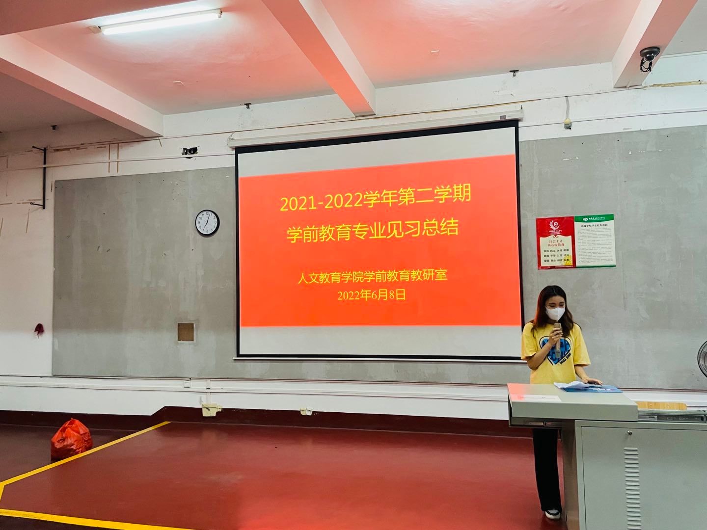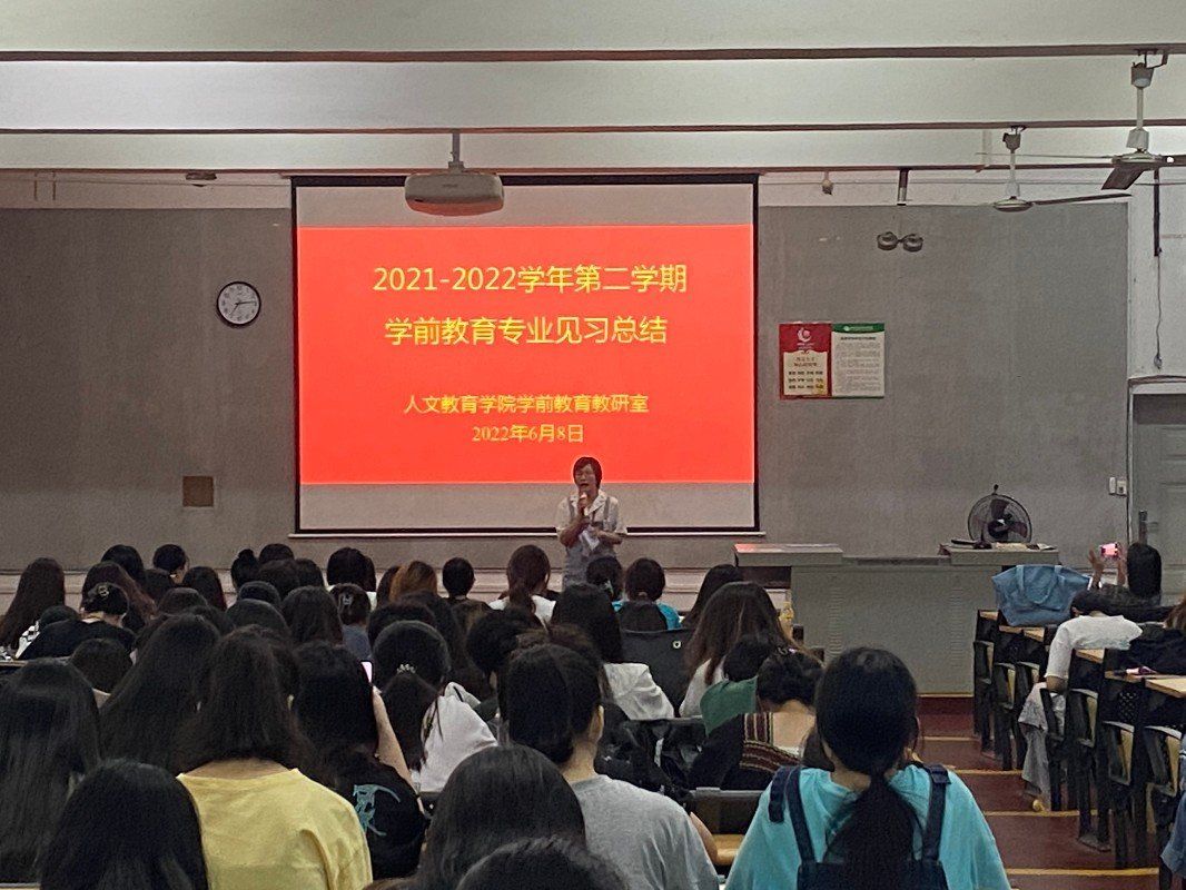 教育见习结束后,学前教育教研室于6月8日晚组织学生召开2021-2022学年第二学期学前教育专业见习总结会。总结会上,学前2002班学生乔阳代表全体教育见习同学发言,乔阳同学围绕本次教育见习谈了收获和体会。冯小霞老师对本次教育见习进行总结,肯定了同学们的表现,指出不足,勉励同学们改正不足,争取更大的进步。学前教育教研室副主任蒙剑英老师发表讲话,希望同学们针对本次教育见习认真做好总结,对标合格幼儿教师,查找差距,完善自身,争取早日以合格幼儿教师的身份在走上岗位。 (照片:学前教研室)