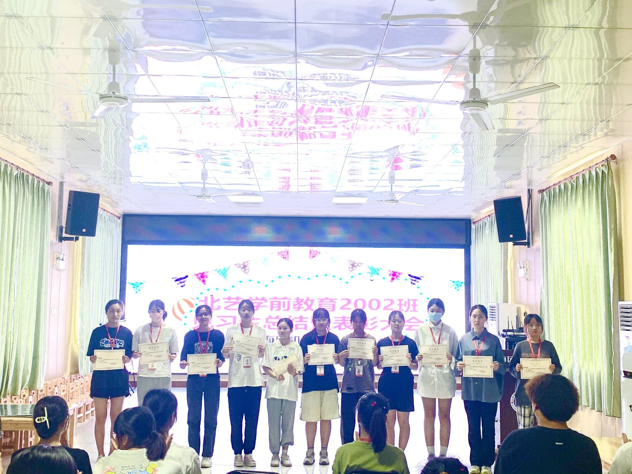 见习活动的最后一天,学校与园方一同为见习生们举行了教育见习表彰大会。会上,幼儿园园长祝贺见习生们为期两周的教育见习取得圆满成功。随后,各幼儿园小、中、大班的级长分别为见习生们播放了见习期间的精彩照片并作发言,回顾了各位见习生在班里见习时的优秀表现。各位见习生也踊跃发言,分享了自己在见习期间的所见所闻及心得体会。最后,为本次教育见习的优秀见习生举行了颁奖仪式,肯定他们在见习期间的优秀表现,并为其他见习生树立了学习榜样。