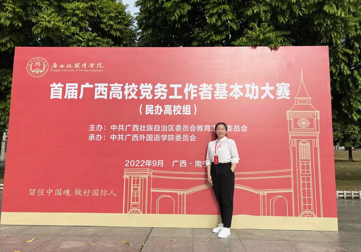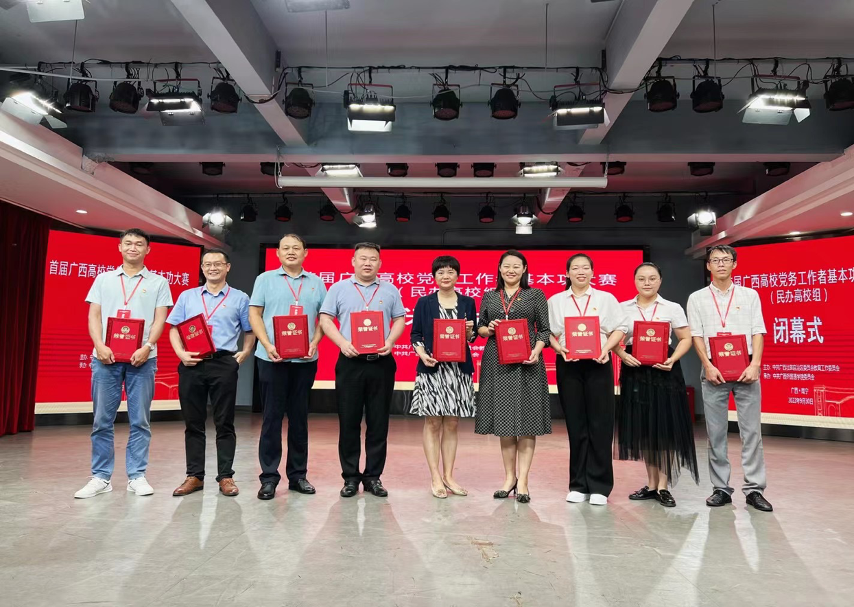 近日,首届广西高校党务工作者基本功大赛民办高校组比赛在广西外国语学院圆满落下帷幕。经过两天紧张激烈的角逐,我院选派的教师第一党支部书记张冬婷老师,荣获教师党支部书记组三等奖。