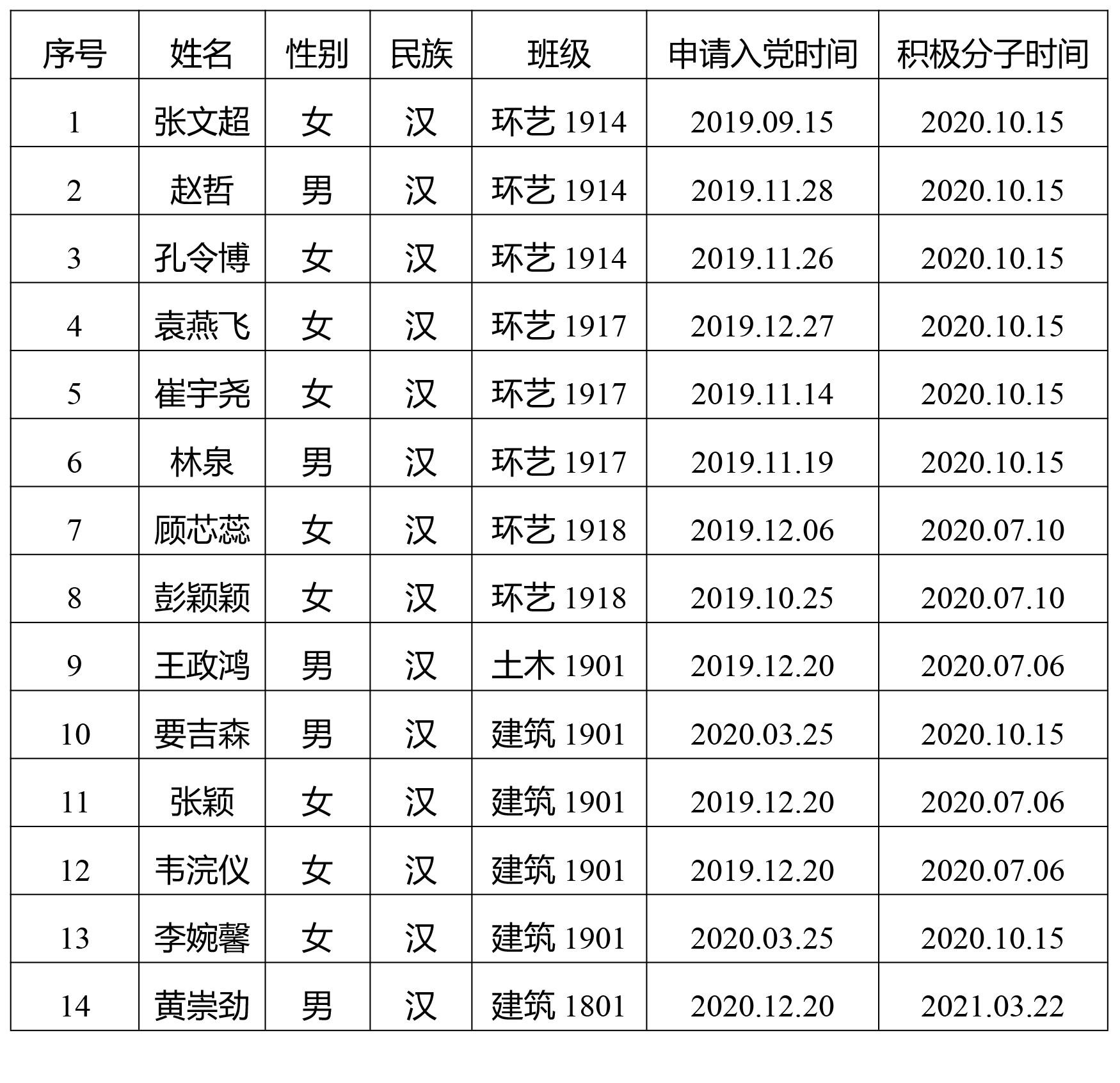 关于拟将张颖等14位同志列为发展对象人选的公示