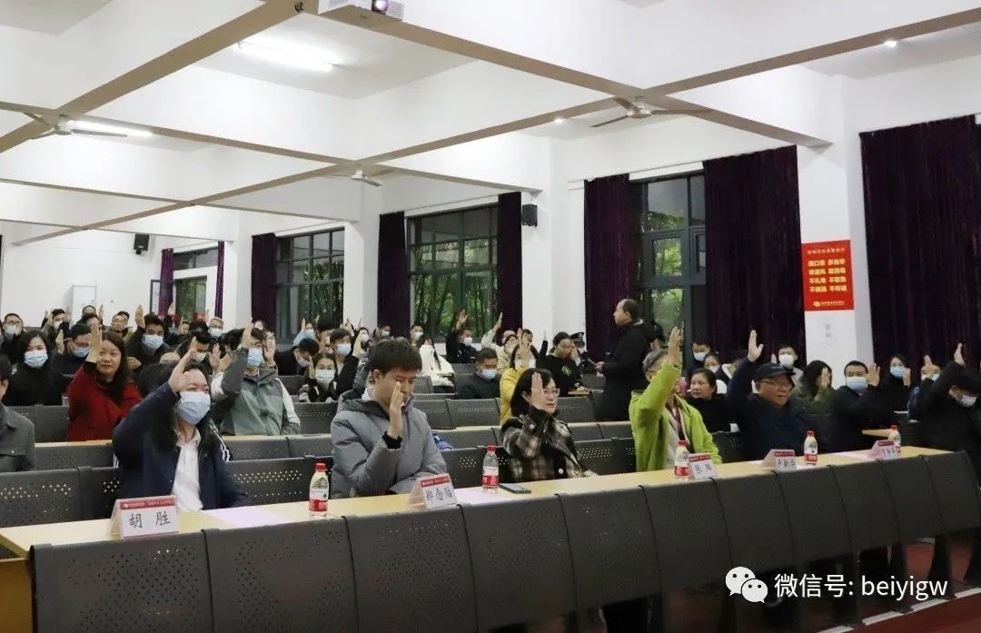 会上,现场代表举手表决关于学校“选择登记为非营利性民办学校”,并全体一致通过。