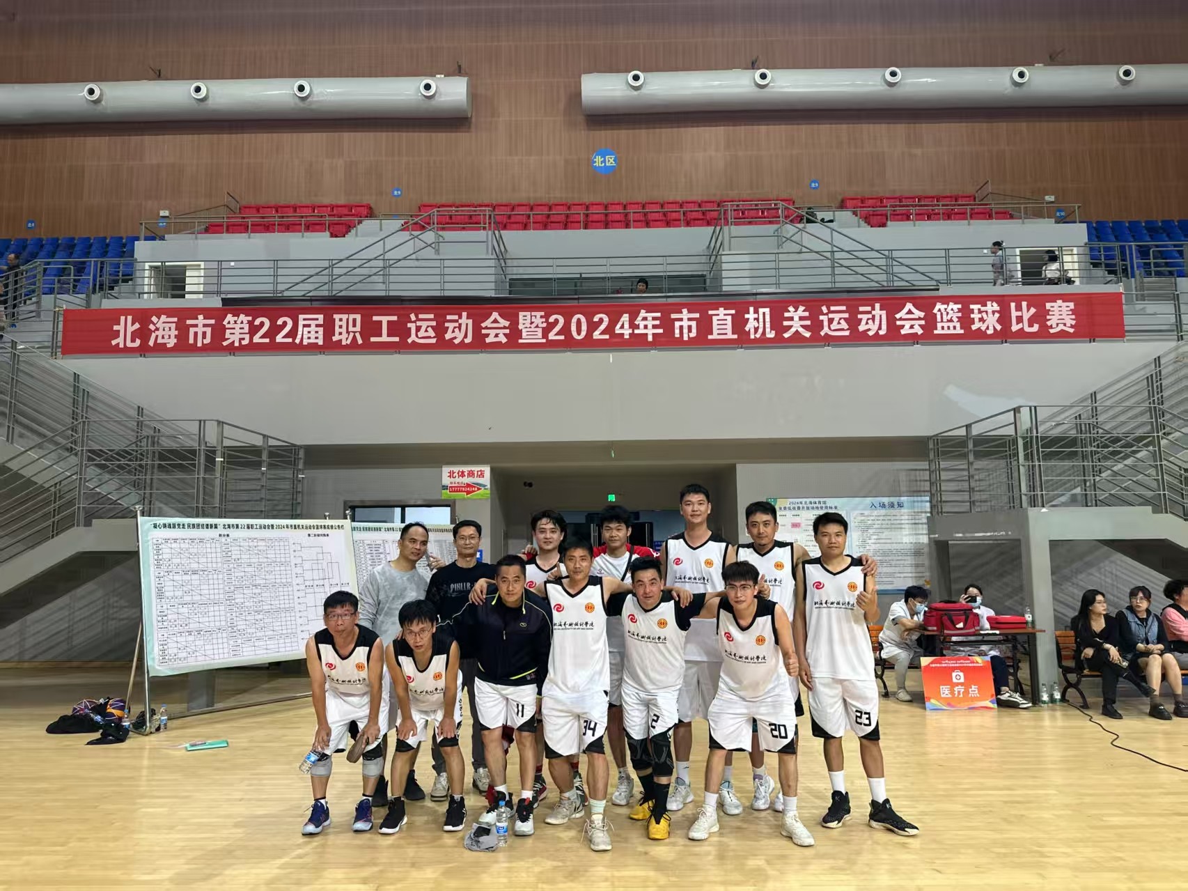 近日,校工会报名参加了由北海市总工会举办“凝心铸魂跟党走 民族团结谱新篇”北海市第22届职工运动会暨2024年市直属机关运动会男子篮球比赛,我校男子教职工篮球队在赛场上敢打敢拼,迎难而上,取得了8强的好成绩。本次报名参赛运动员共16人,均为我校教职工工会会员。