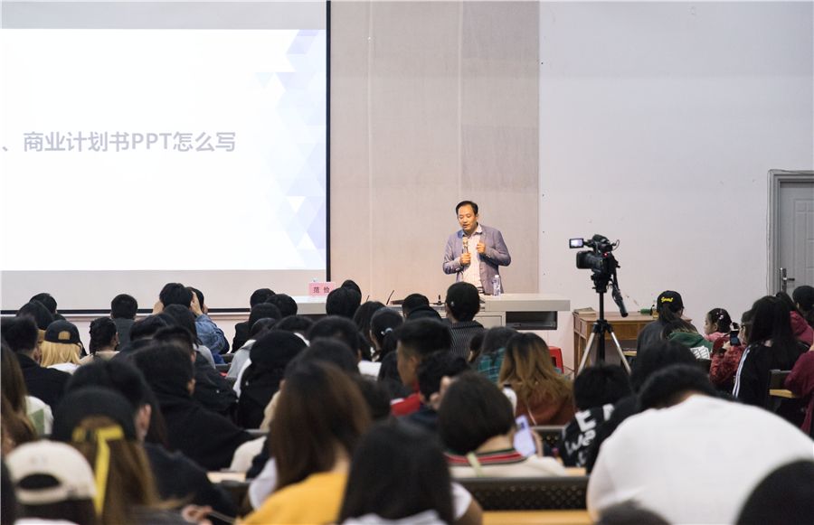 2019年12月1日晚8:00于西校区伦理楼107,广西大学生创业就业研究会范俭会长为我校师生带来一场题为《大学生创新创业大赛获奖团队经验分享》的精彩讲座,现场座无虚席。本次讲座由王斌副校长主持。 讲座开始,范会长首先解读了什么是创新创业大赛,并从如何找好和做好大学生创业项目两方面给予了思路指导。范会长通过全方位分析历届参赛情况和目前的比赛形势,指出创新是创业比赛的核心。