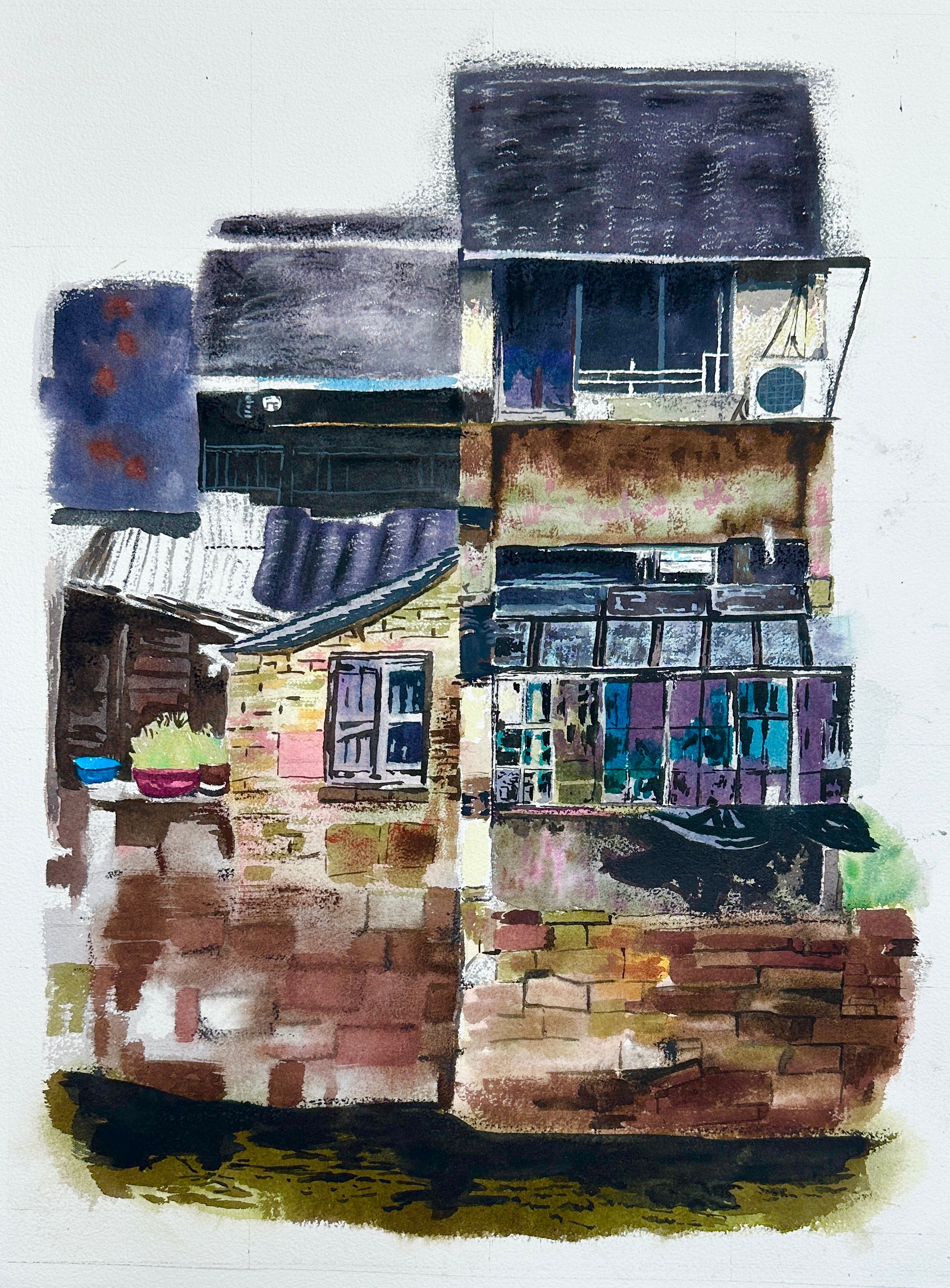 二等奖 绘画2105 王凤桐 《窗与楼》 30cm×40cm×9 指导教师:袁志伟