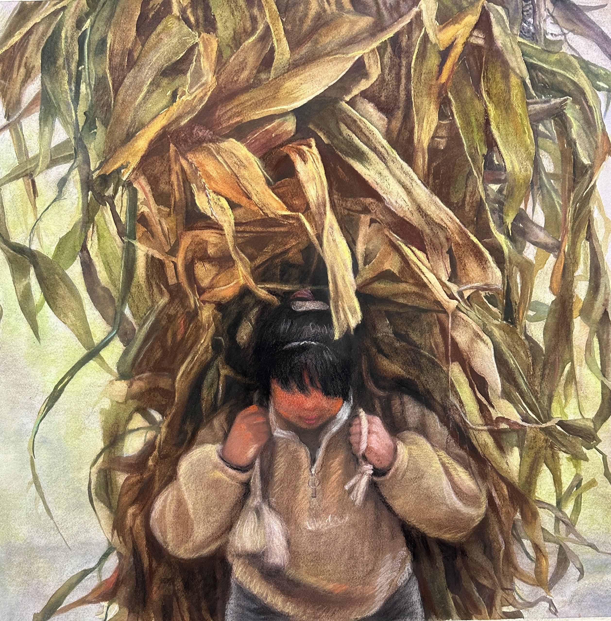 三等奖 绘画2101班 周京京 《掌向光》 132×169cm  指导教师:熊晓翠