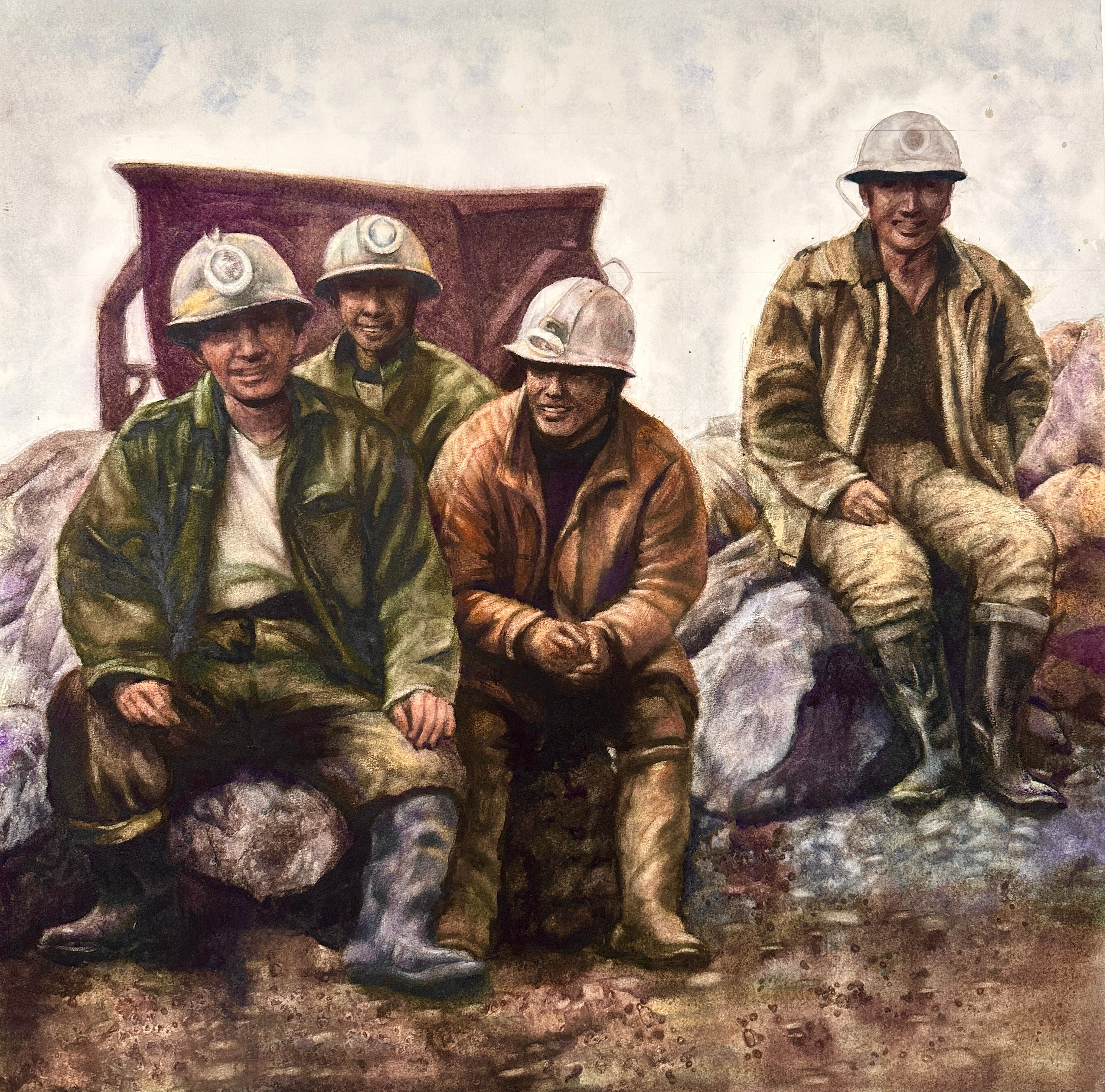 二等奖 董春艳 《矿工兄弟情》75×75cm 指导教师:刘广滨、段凝