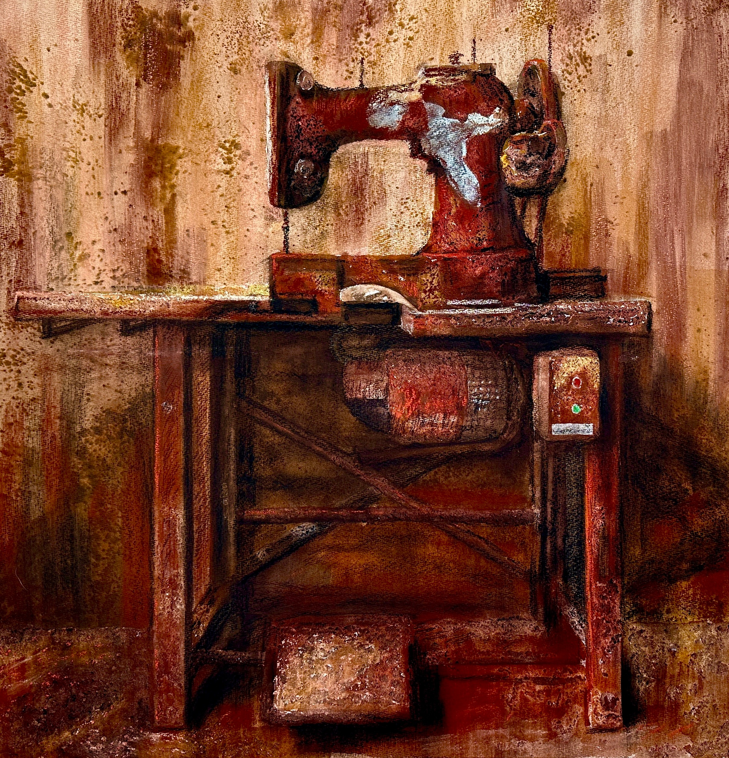 三等奖 绘画2104班 谭晓龙 《针车系列Ⅰ》 80×60cm  指导教师:刘斌、程宣睿