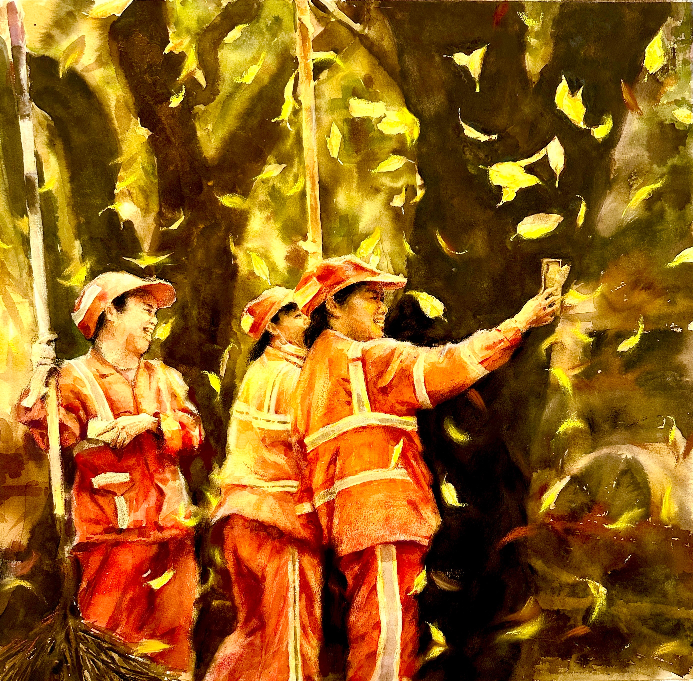 范宝怡 《“画说”工务人》 53x76cm 指导教师:刘广滨、陈亚宗