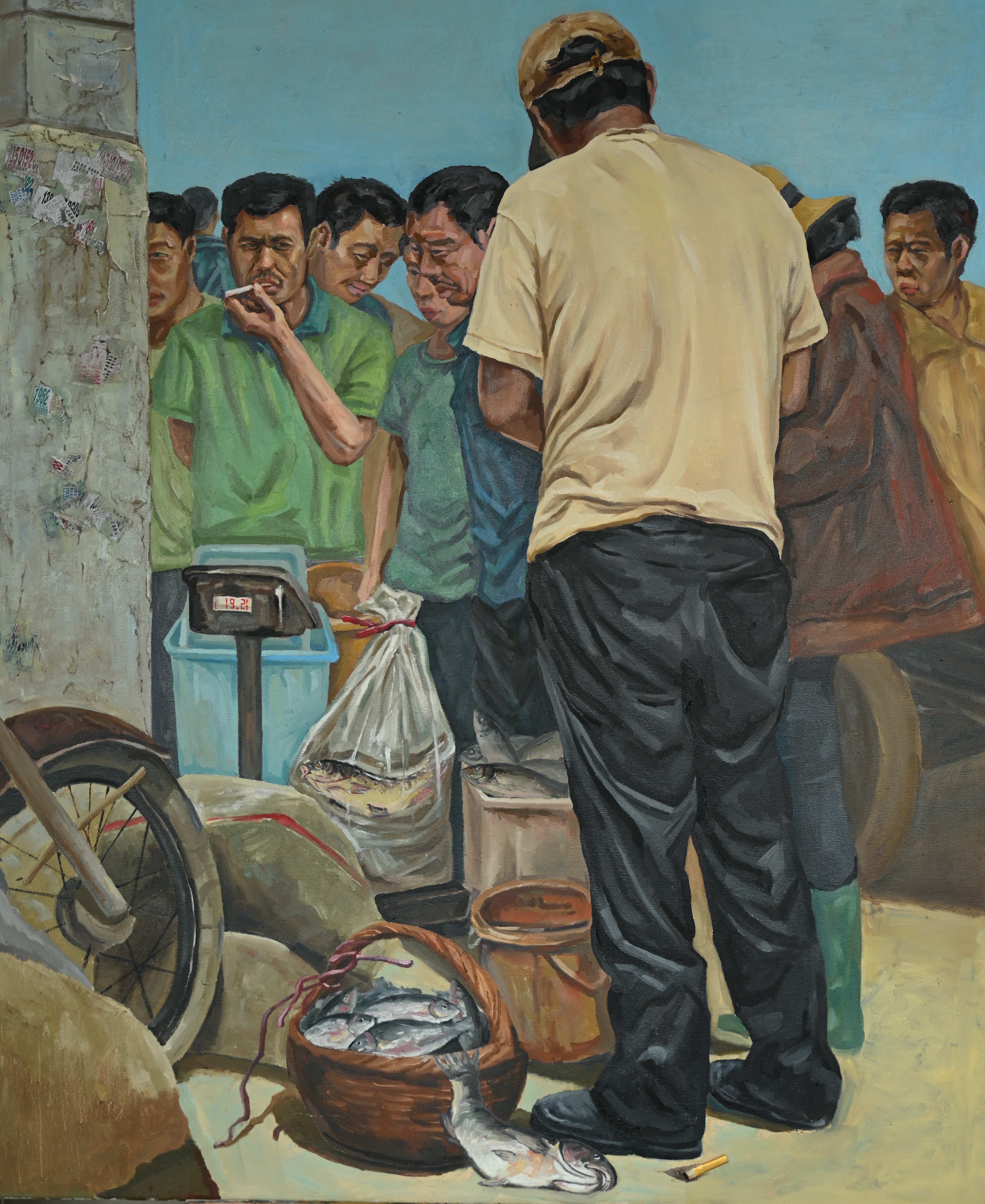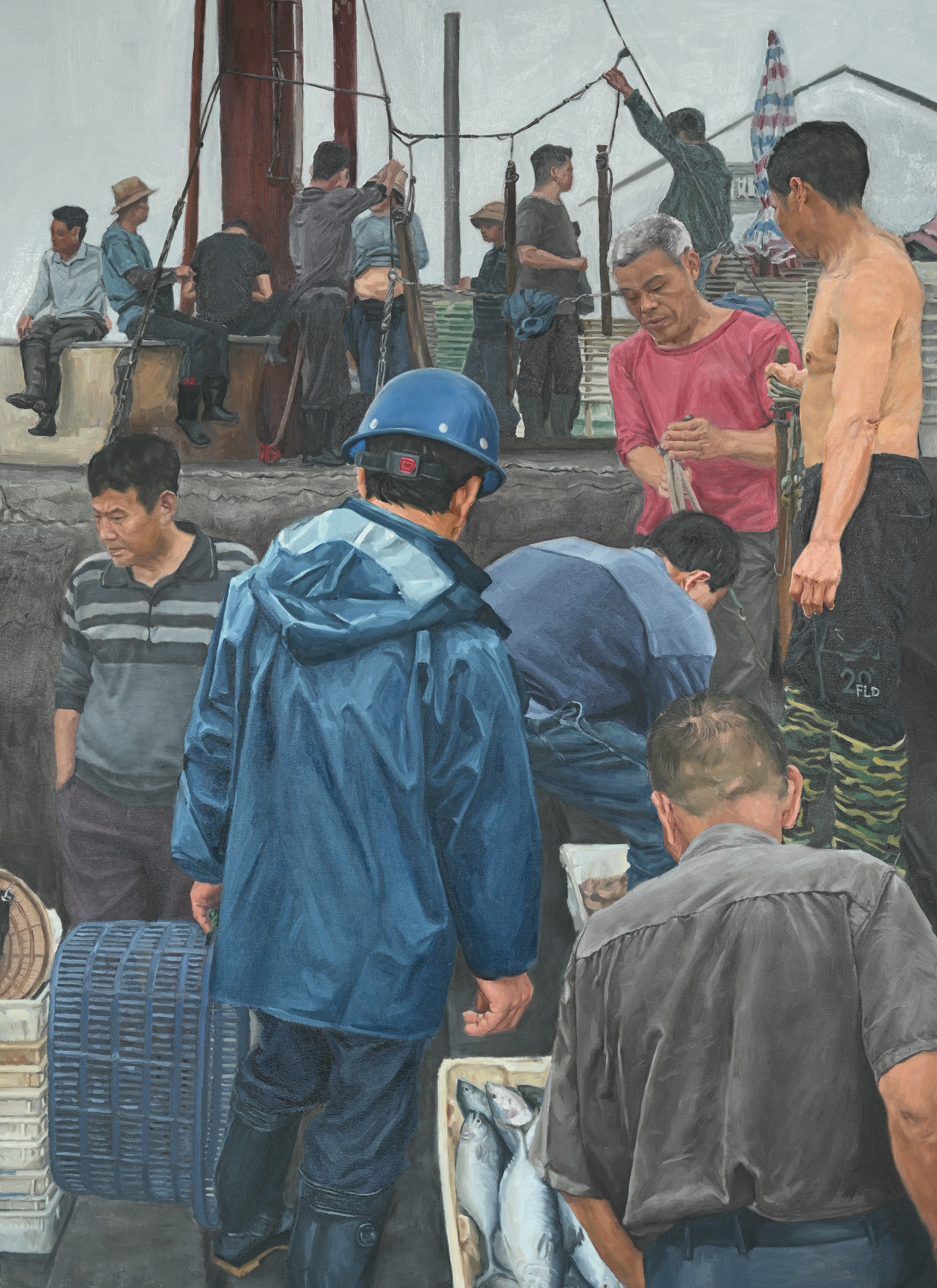 二等奖 绘画2105班  易宁波 《侨港早市》 150cm×110cm 指导教师:袁志伟