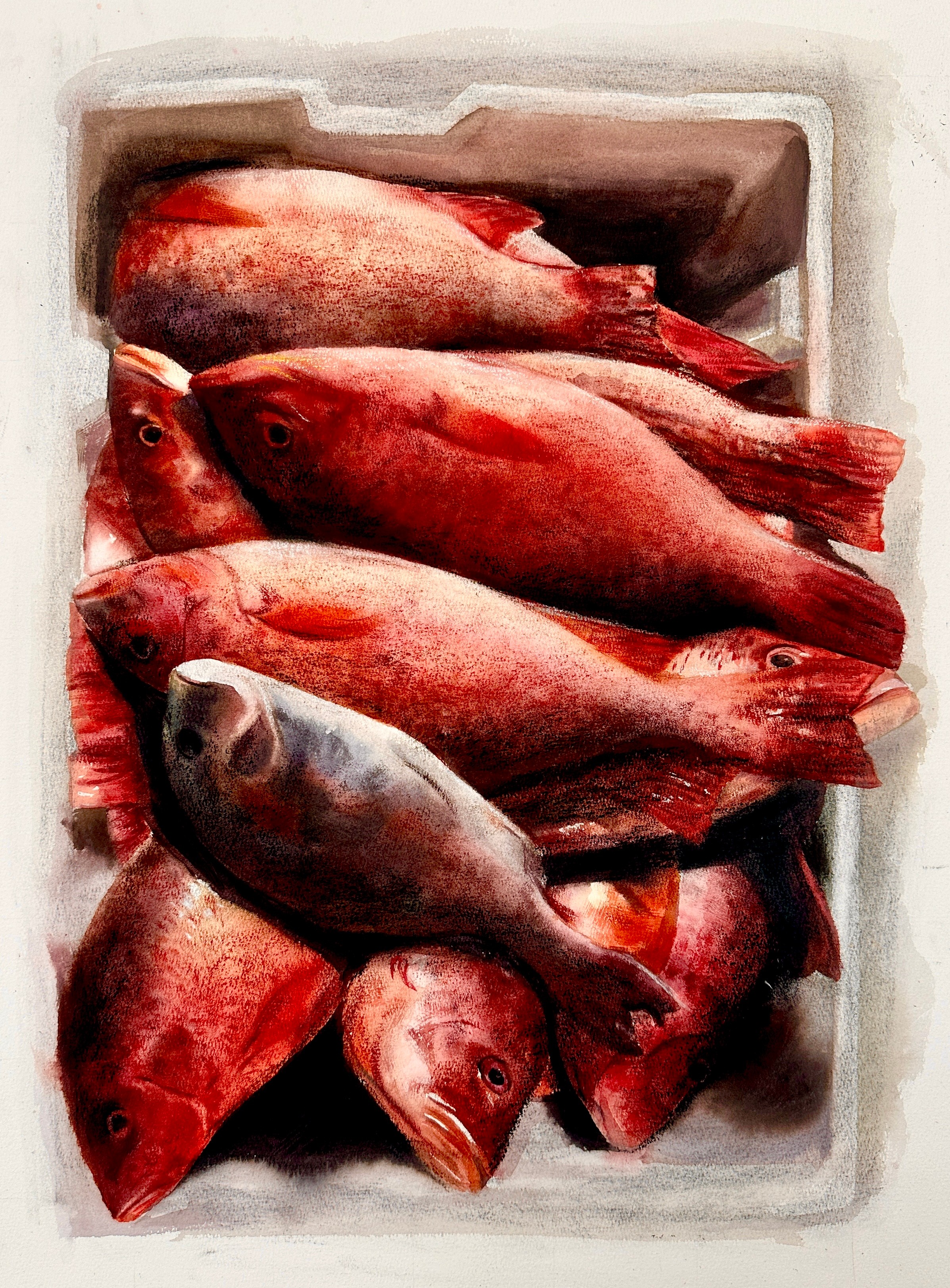 绘画2103班 黄龙天 《鱼犯》 100×120cm 指导教师:龚为、谢瑞