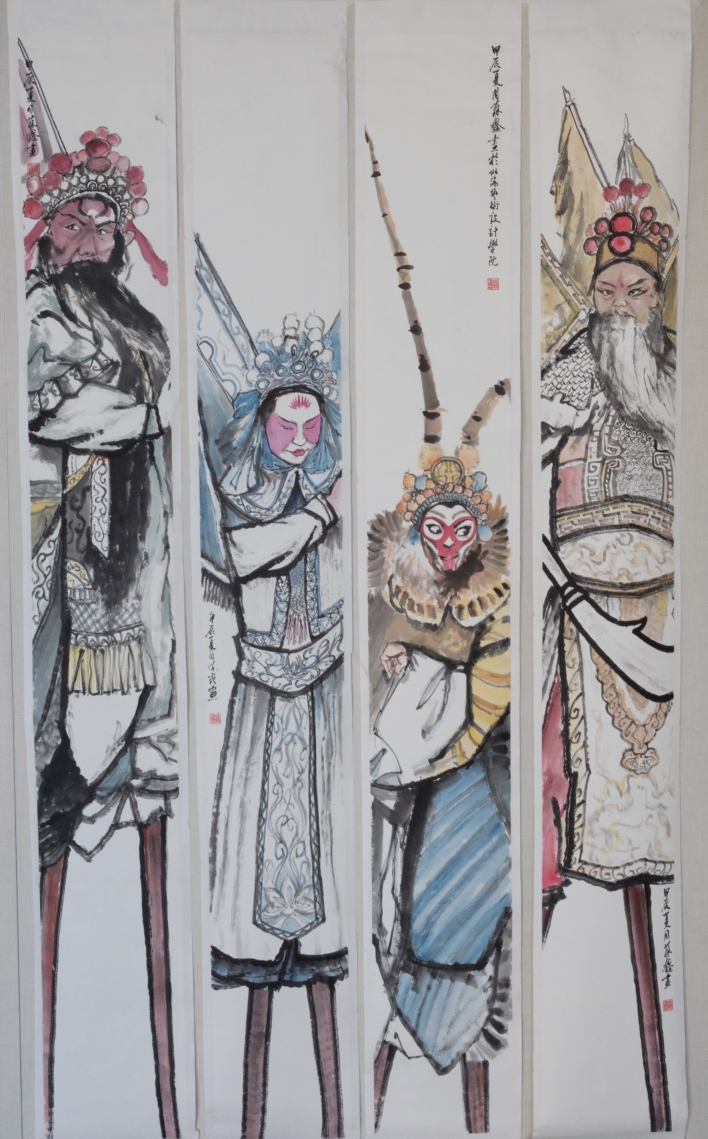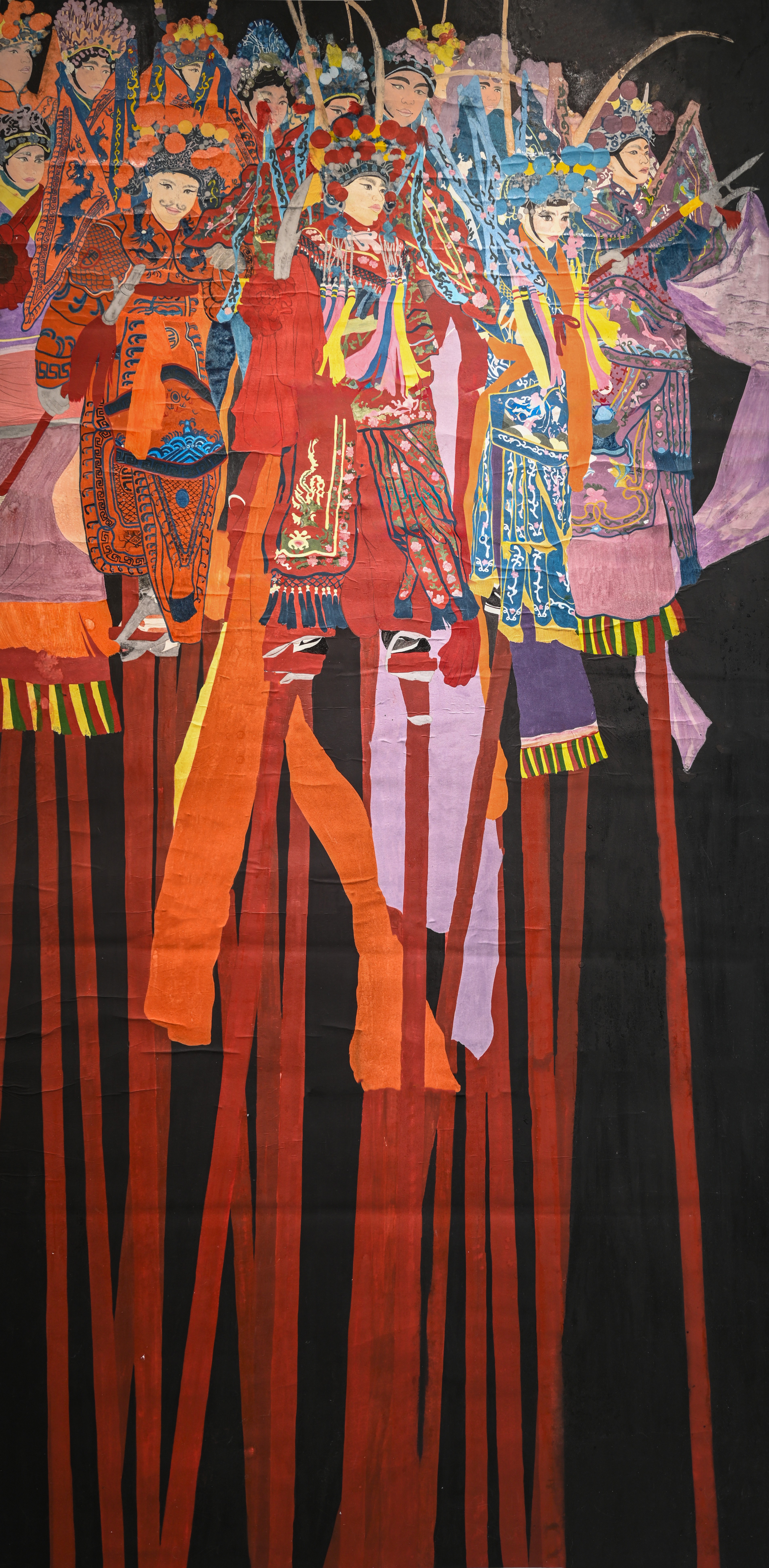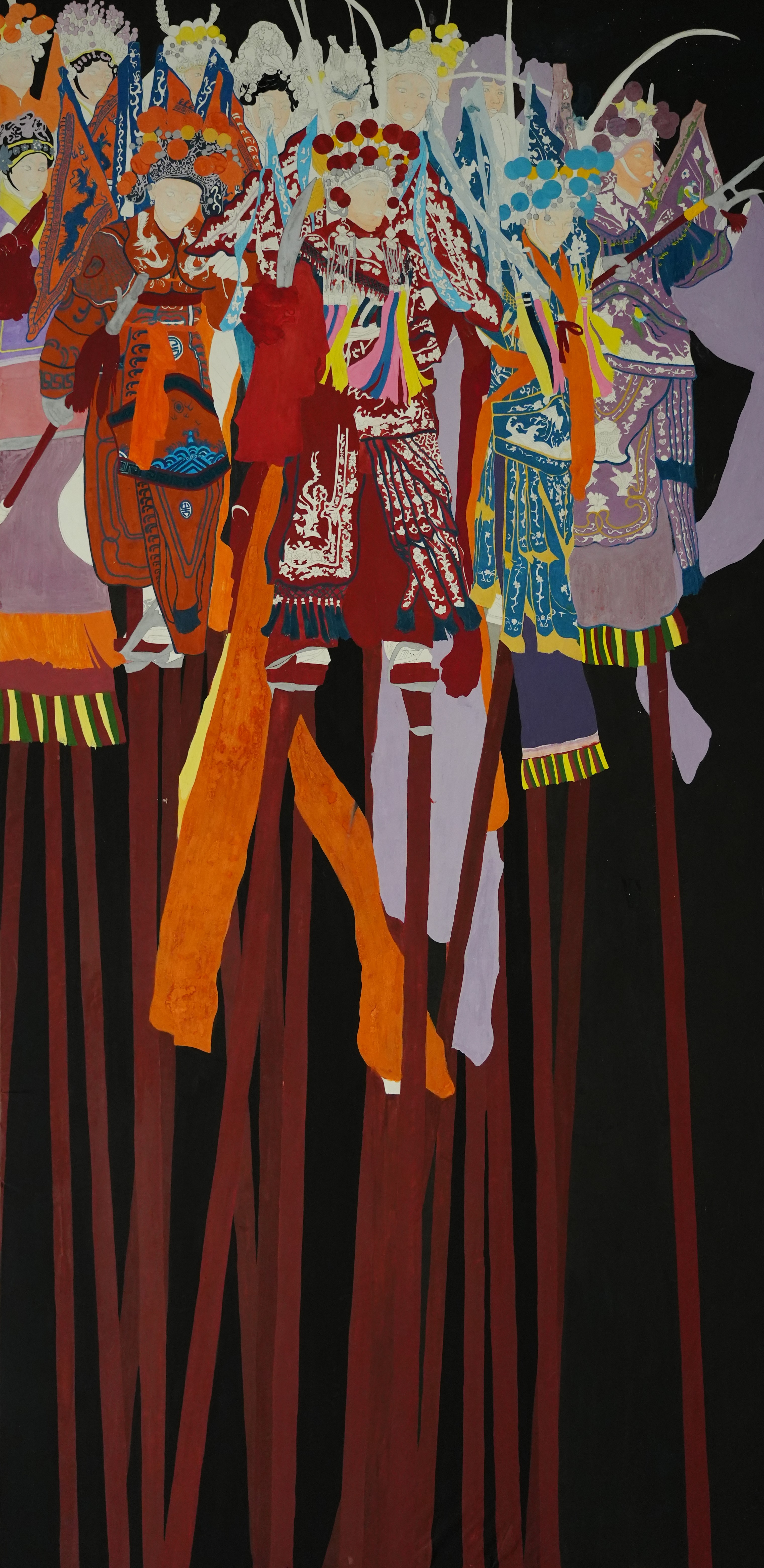 二等奖 绘画2101班 苏鑫 《步云高跷》 240×30cm×4  指导教师:熊晓翠