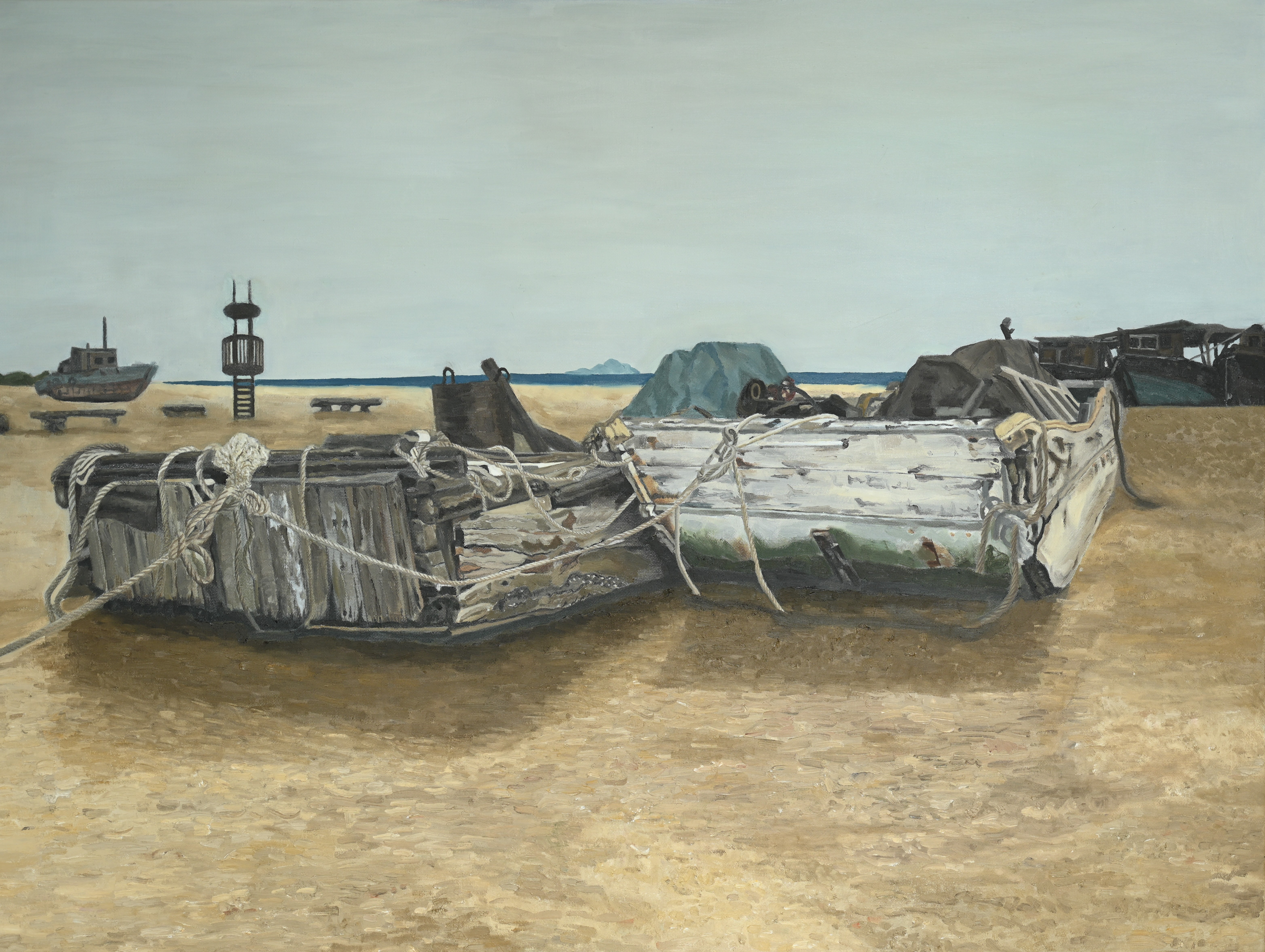 三等奖 绘画2105班 吴瑜 《搁浅的老渔船》 100×133cm 指导教师:袁志伟