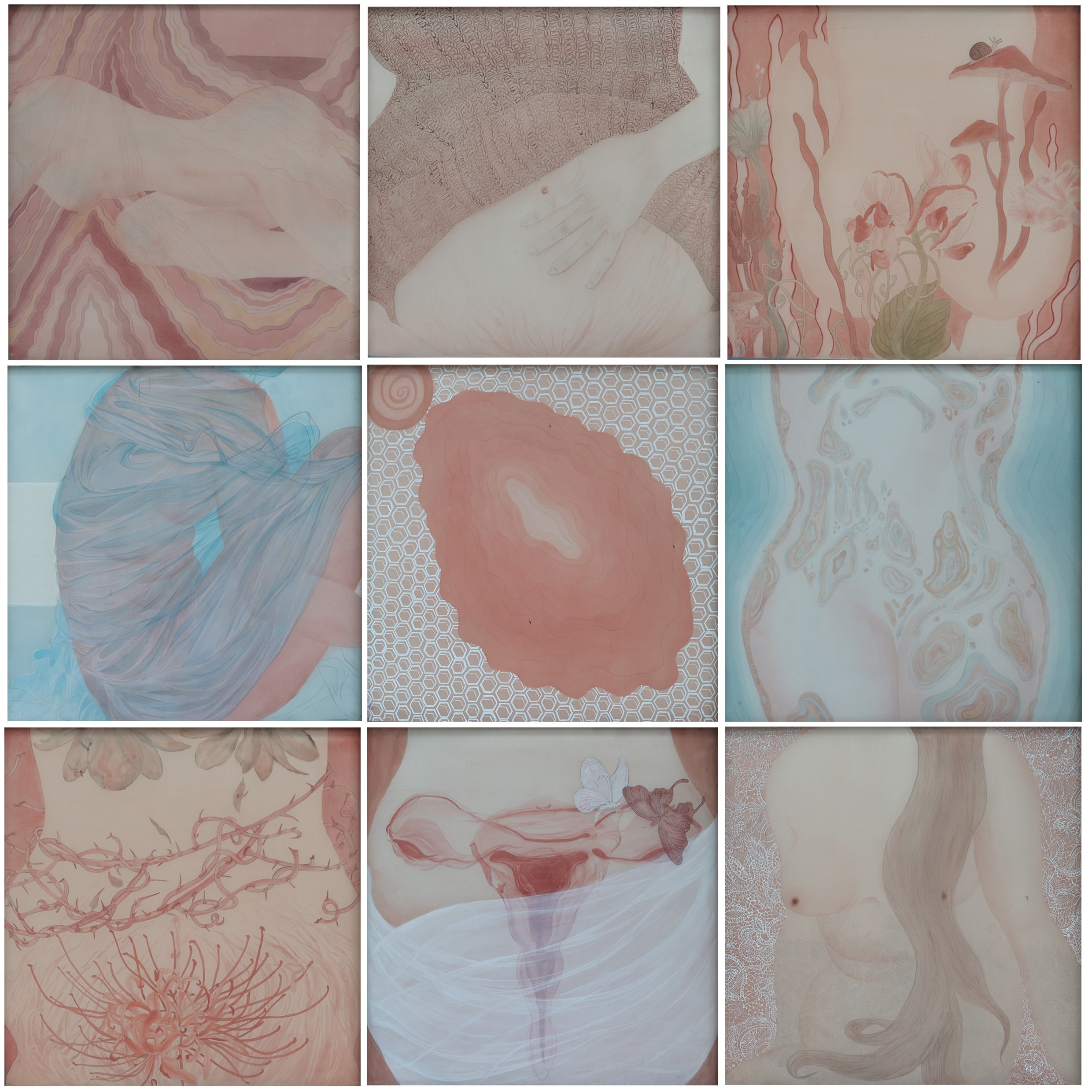 一等奖  绘画2101班 张舒雯 《痕》 50×50cm×9  指导教师:熊晓翠