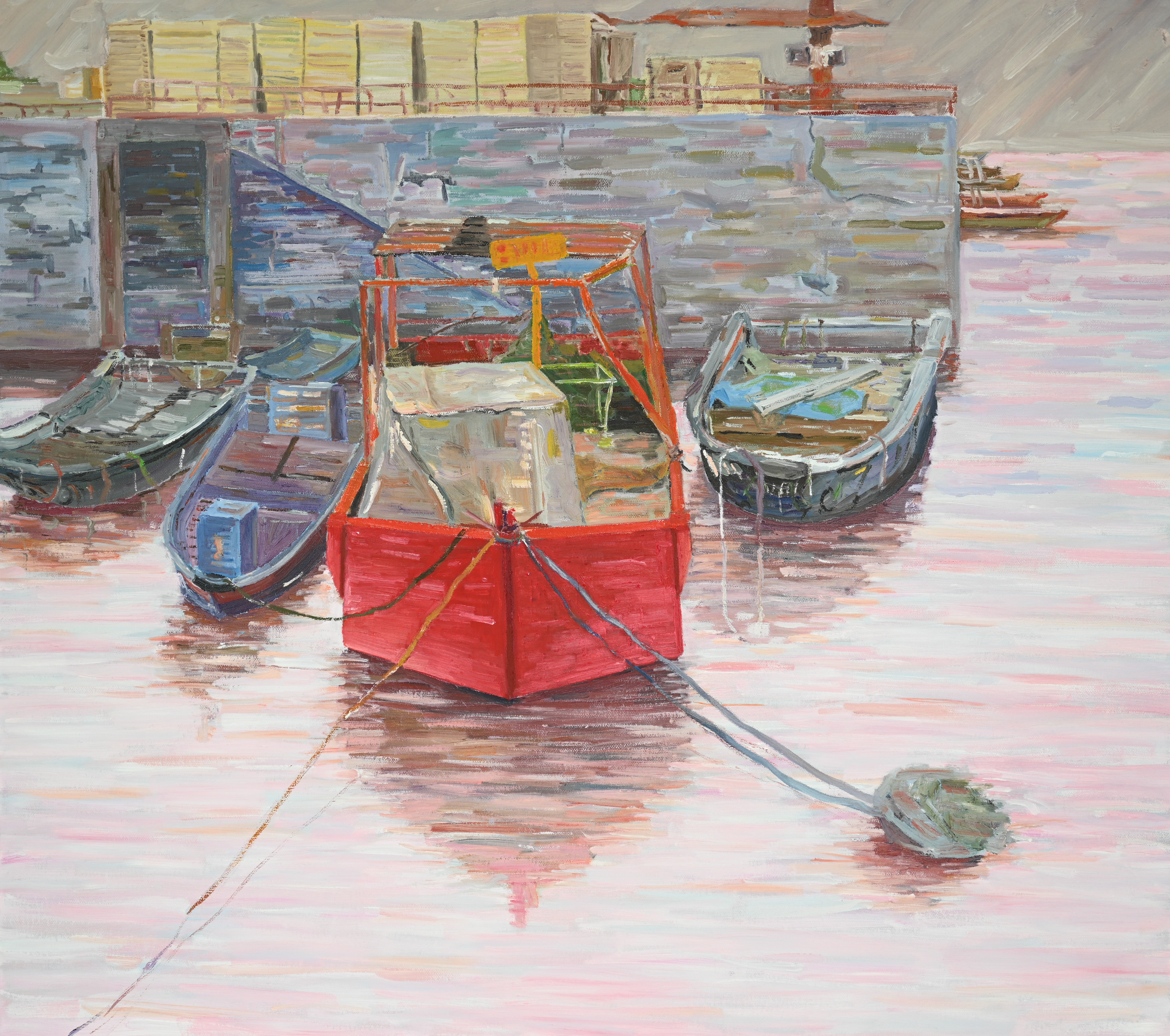 绘画2105班  刘文庆 《渔港记忆》 90×100cm 指导教师:袁志伟