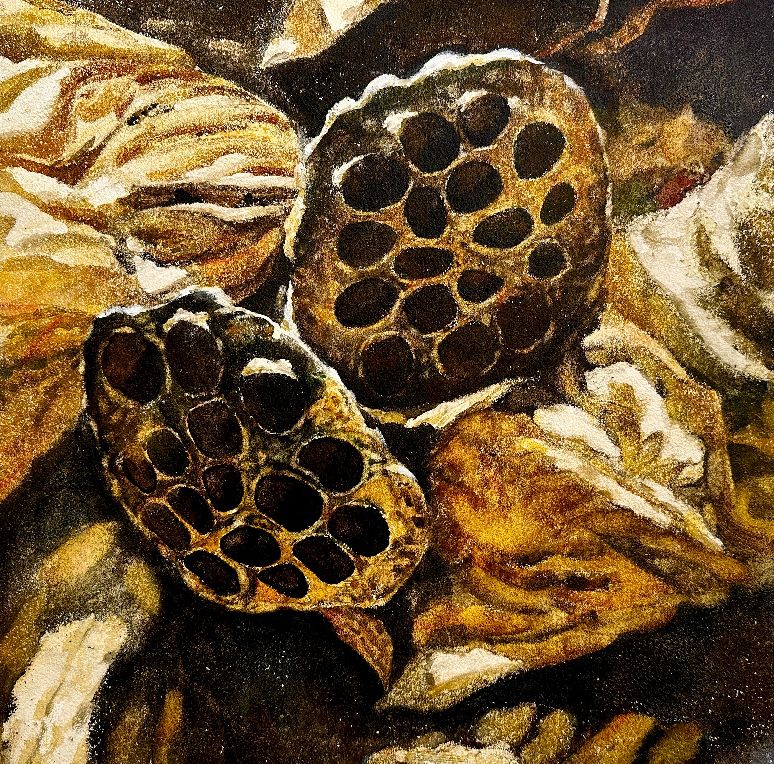 绘画2101班 张鸿 《留得枯荷听雨声》 170×100cm  指导教师:熊晓翠