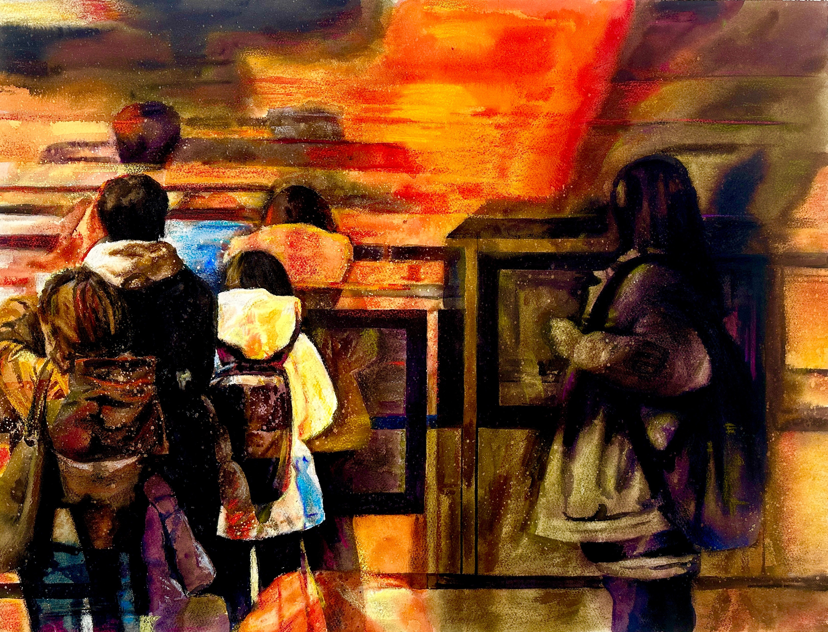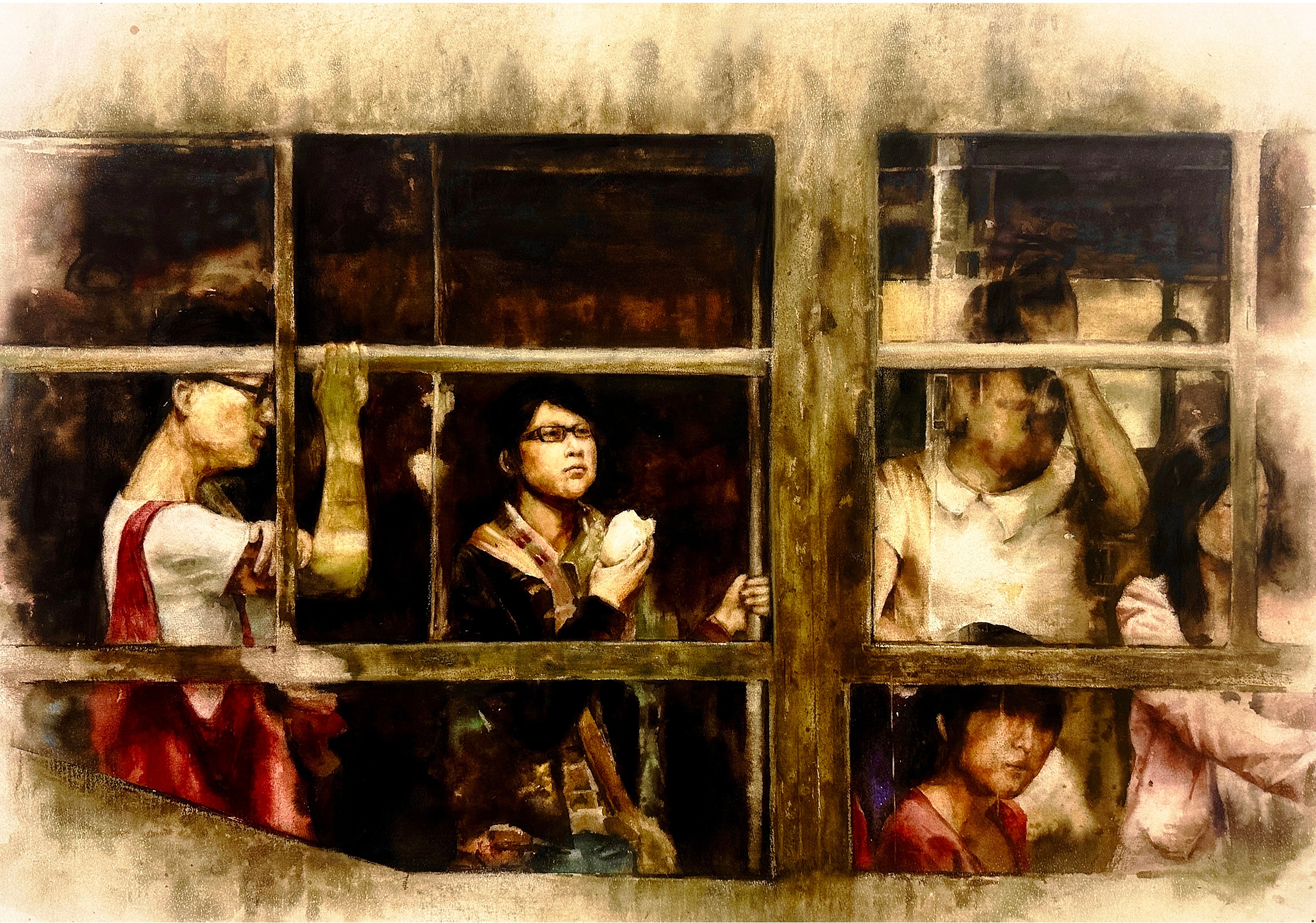 周娜娜 《地铁上》 53x76cm  指导教师:刘广滨、陈亚宗