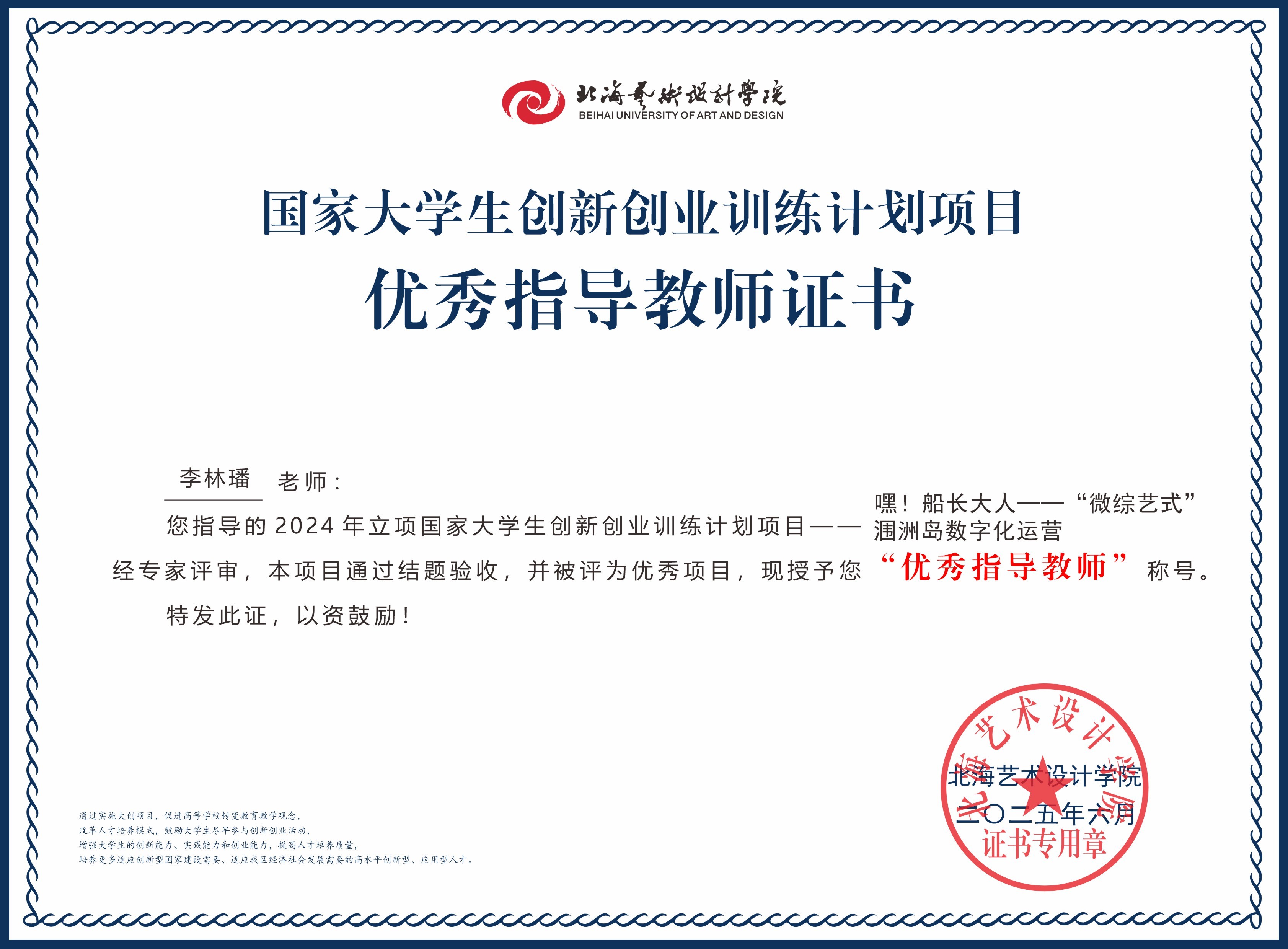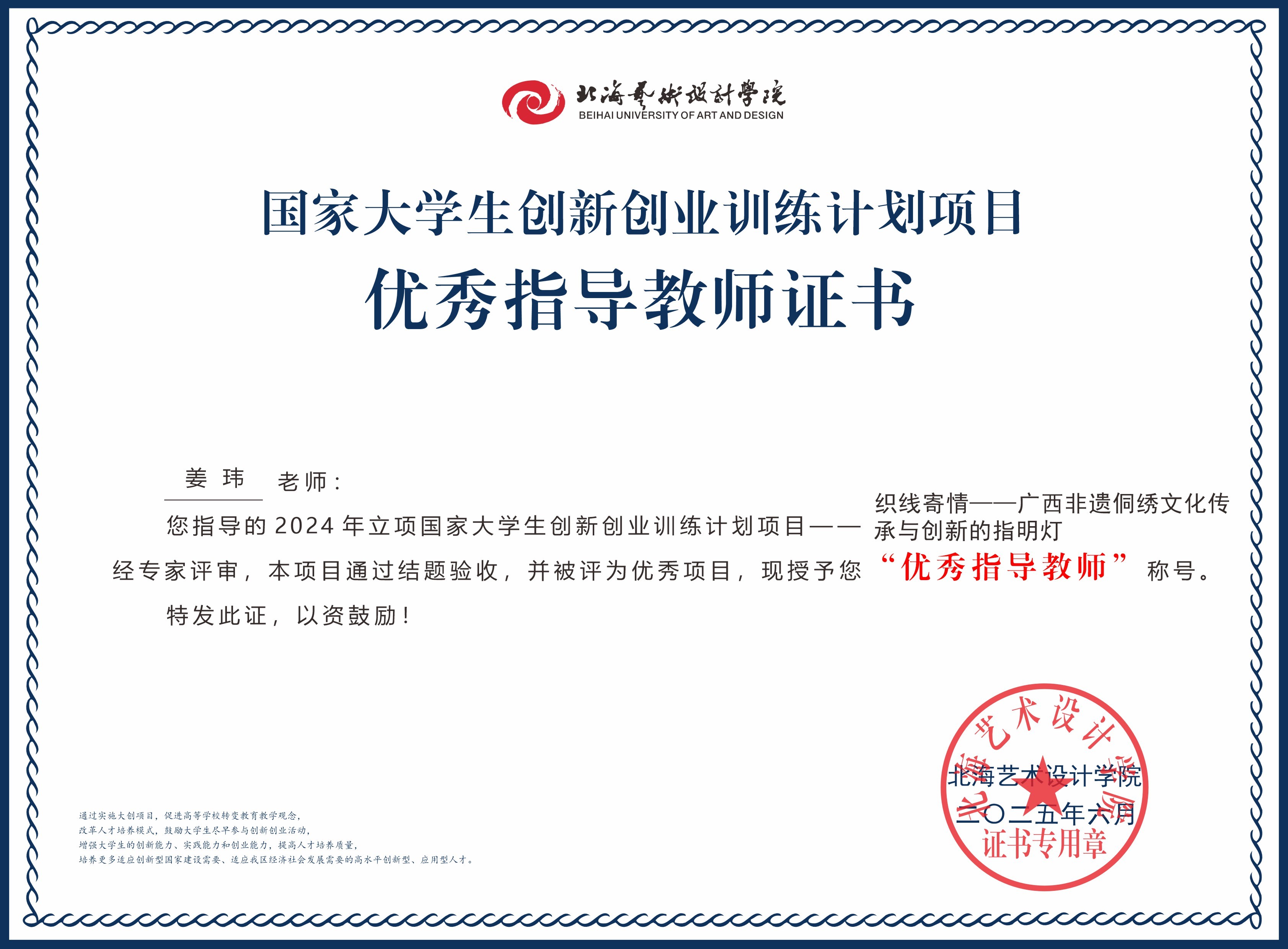 2025年大创项目优秀指导教师