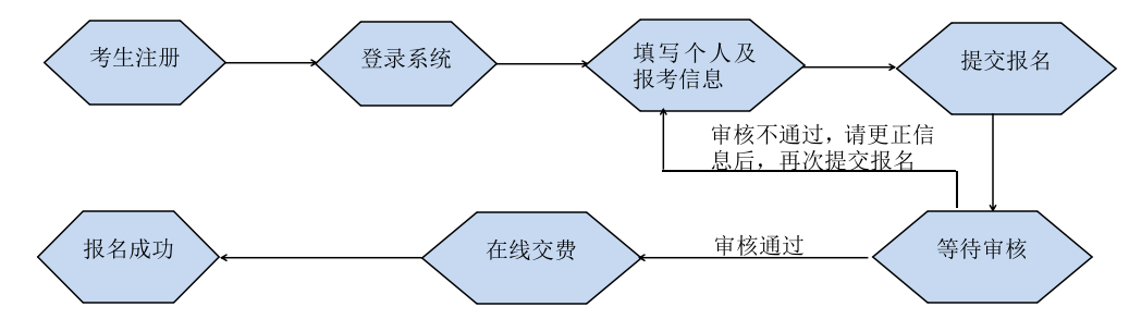 考生登录报名系统后须先注册再进行报名。考生报名时须仔细阅读注意事项,对应步骤的提示,如实准确填写个人信息。