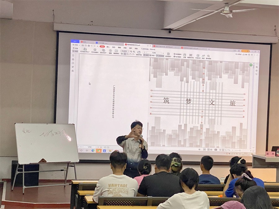 10月24日晚,广州筑梦乡村文化旅游研究院院长武杰在西校区伦理楼107为我校师生带来一场题为《乡村振兴·文旅筑梦——谈当下设计行业的设计实践与就业方向》的精彩讲座,讲座由设计艺术学院副院长白建强主持。