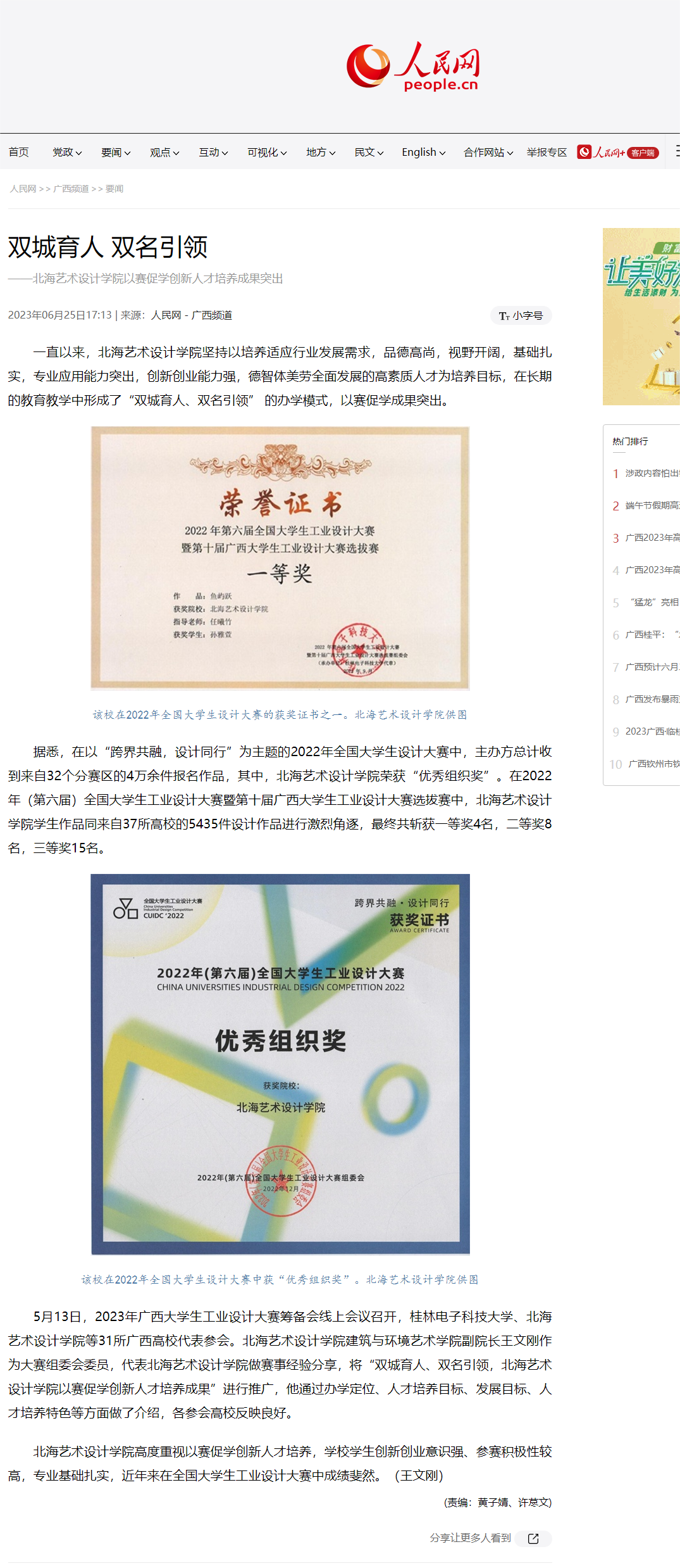 人民网报道我校“双城育人 双名引领 ”以赛促学创新人才培养成果突出