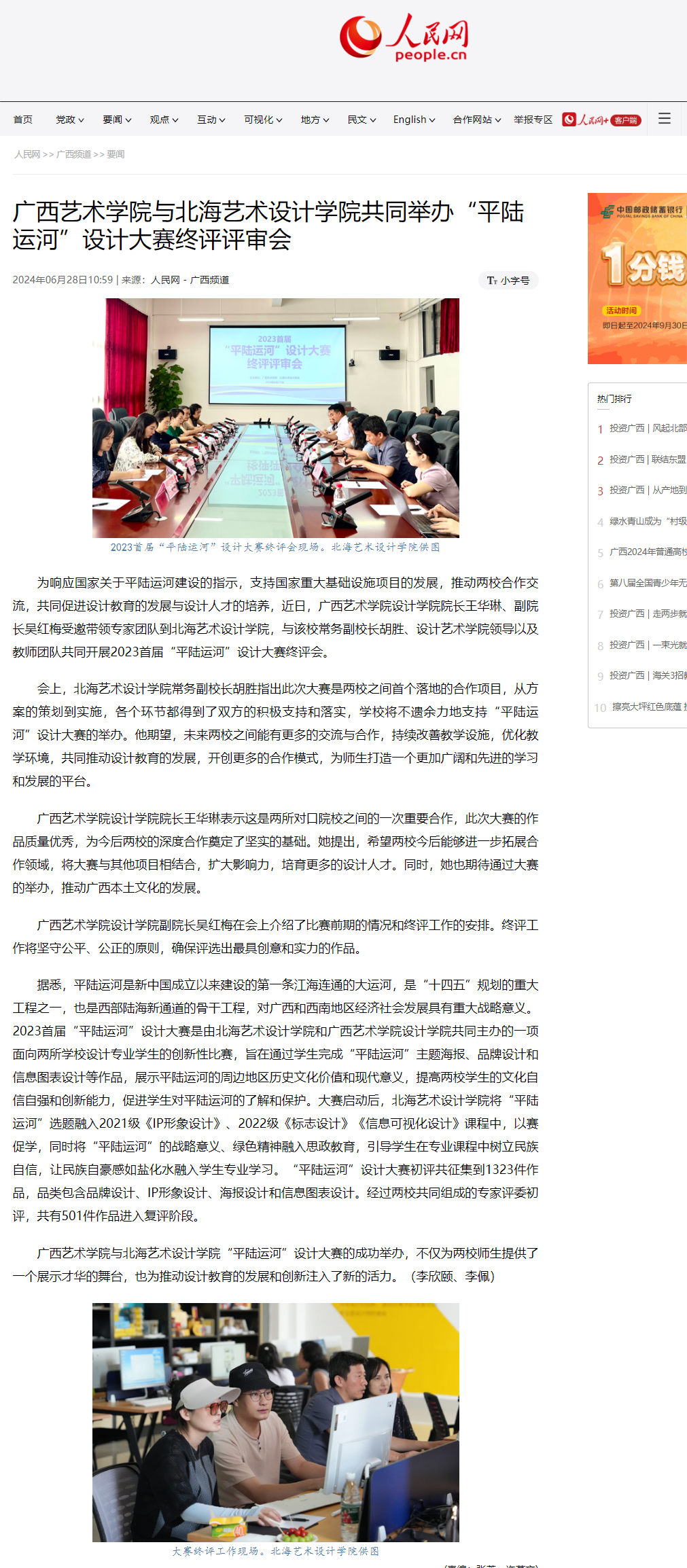 人民网:广西艺术学院与北海艺术设计学院共同举办“平陆运河”设计大赛终评评审会