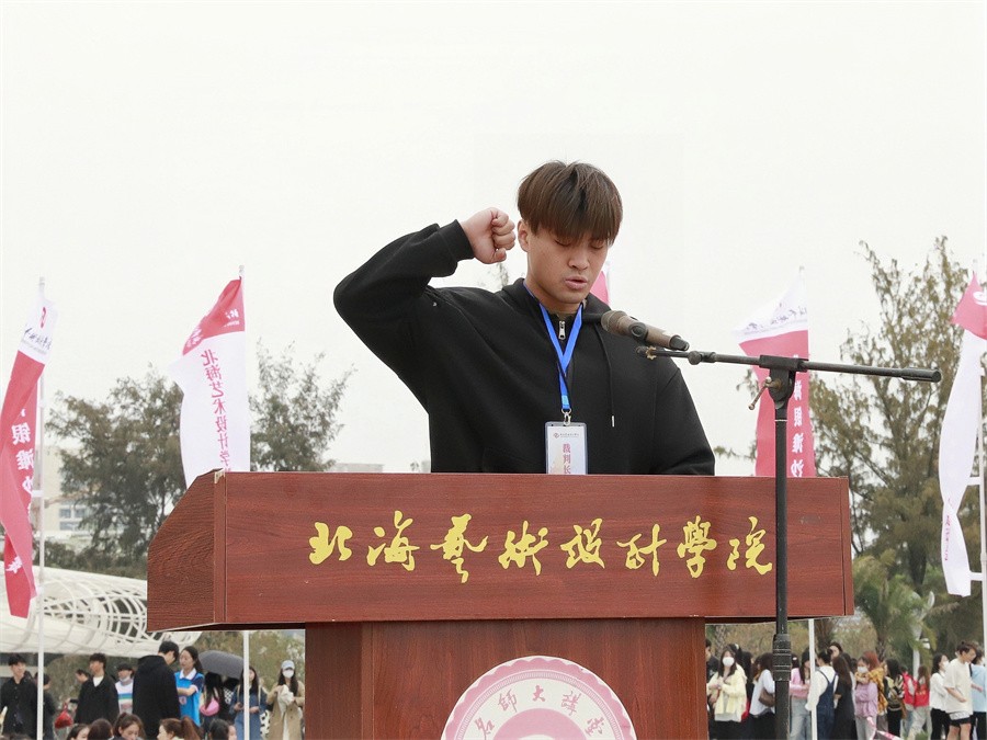 迎着北部湾灿烂的朝阳,4月8日 ,北海银滩沙雕比赛暨北海艺术设计学院沙滩运动会在北海市银滩公园举行。北海旅游集团有限公司副总经理李小军、学校党政领导、全校师生参加开幕式。
