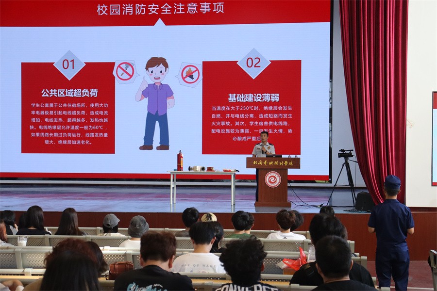 演练活动中,2023级学生宿舍长、辅导员、新入职教职工及图书馆、食堂、超市、快递点等消防重点部门单位的教职工约700余人参与消防演练。北海市银海区消防救援大队指战员和学校医务室医生,分别进行了消防常识理论授课和自救互救技能现场演示和技术指导,各学院组织师生到场集中学习消防安全知识,教育引导学生规范日常消防行为习惯。