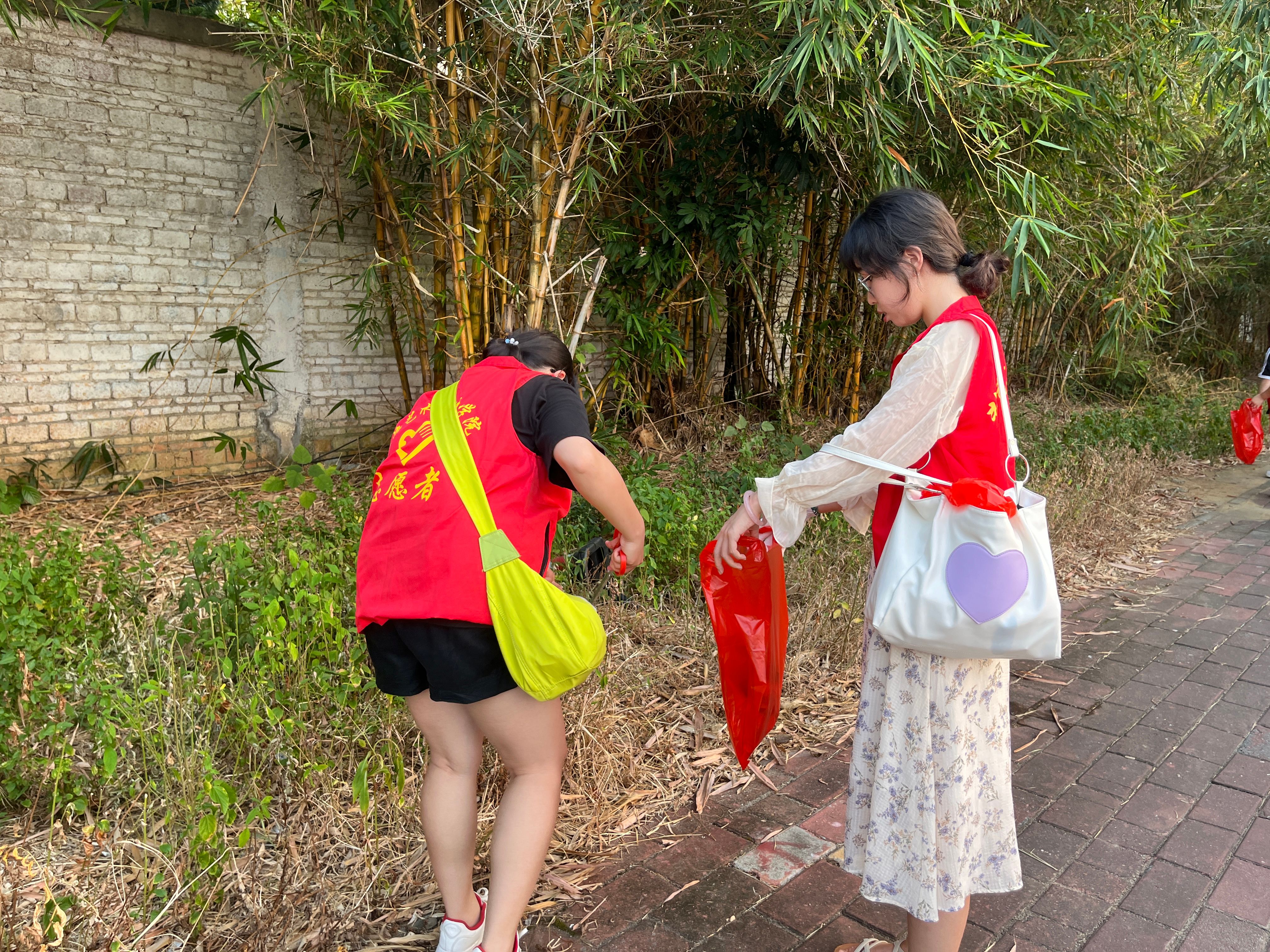 志愿者们手持垃圾袋,钳子等工具,对人行道、绿化带的烟头、废纸片等垃圾进行仔细清理,为街道清洁努力贡献着自己的力量,用实际行动助力创城工作、践行志愿精神!