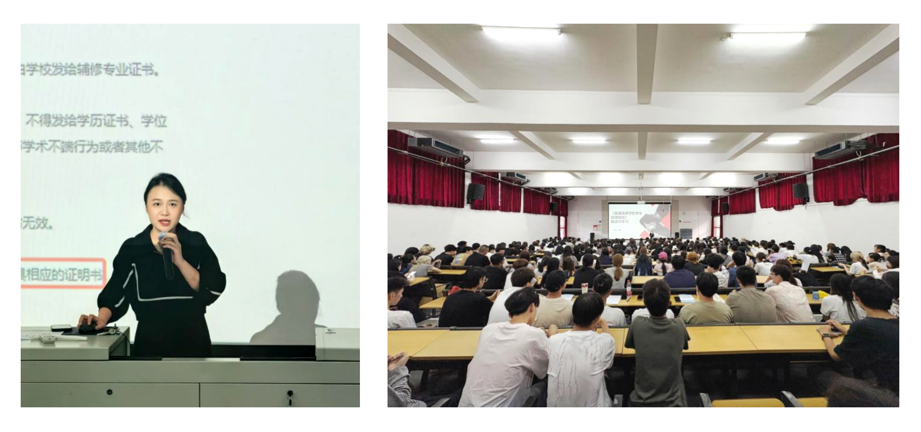 肖玺院长从学生的权利与义务、学籍管理、校园秩序与课外活动、奖励与处分、学生申诉等方面为新生们进行解读。教育部41号令强调依法治校、立德树人,明确学生享有公平教育等权利,也须守法勤学;学籍管理突出弹性学制、休学创业;校园秩序鼓励课外活动,禁违法;奖励突出立德树人,处分坚持教育与惩戒并重;健全校内申诉与行政复核机制,保障学生合法权益,促进学生全面发展。(蒋理 摄)