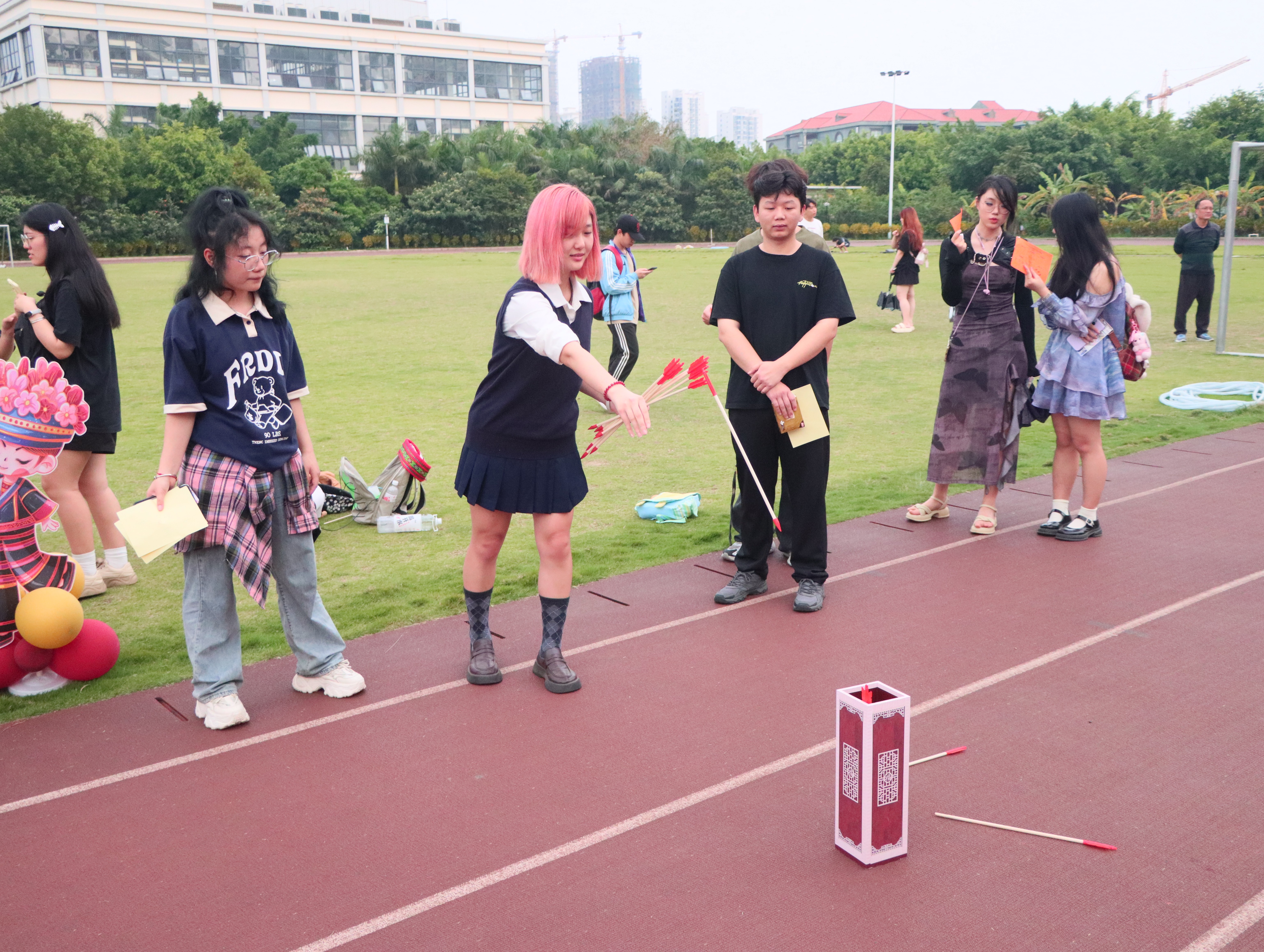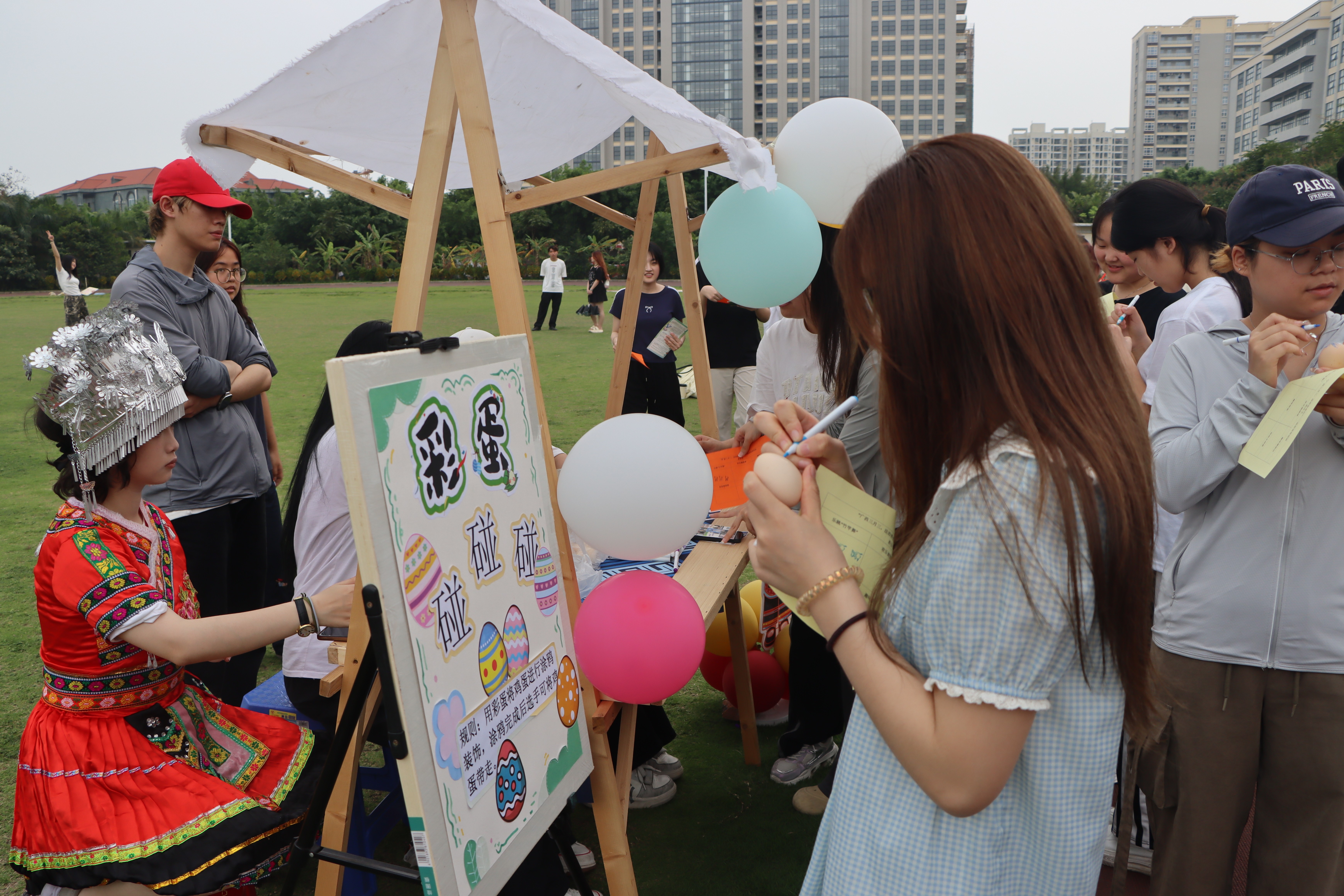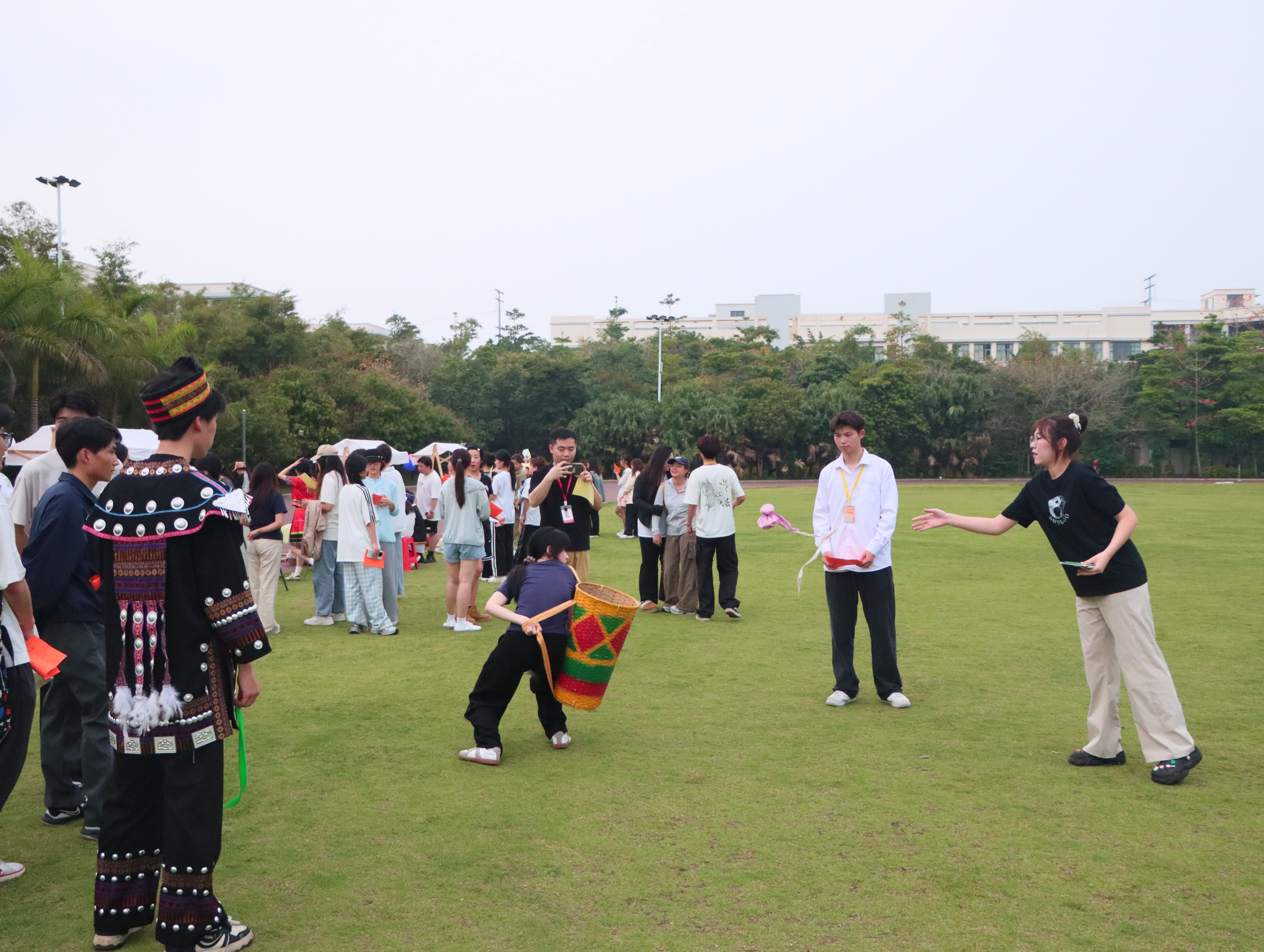 当日,游园活动现场为师生设置了丰富的民俗体验项目。分别有趣味投壶、彩蛋碰碰碰、欢乐抛绣球、乐跳竹竿舞、趣味滚铁环以及法治小问答等。让在场师生在欢声笑语中感受着民族文化的魅力,让大家在参与中传承文化、创新文化。