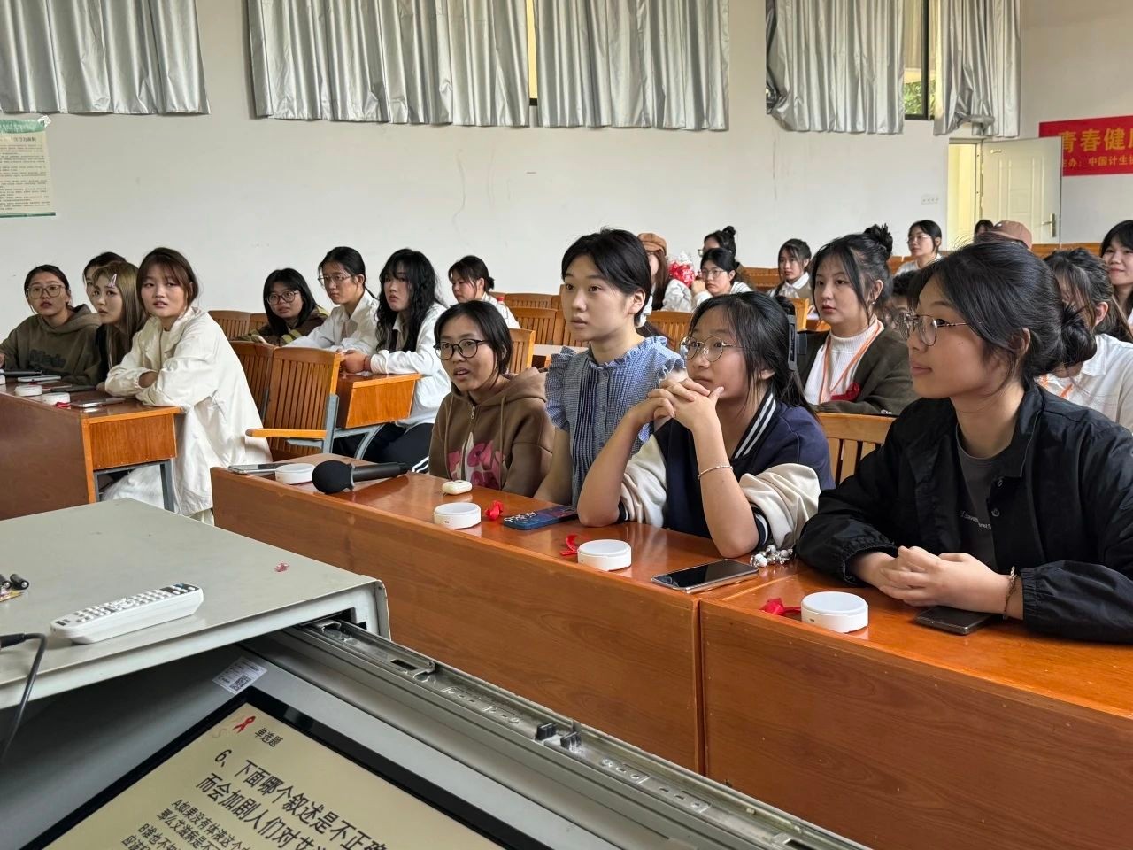 在第36个“世界艾滋病日” 即将到来之际,我校团委青年志愿者协会、青春健康同伴社于11月19日在西校区功德楼116开展“青春健康·你我同行—要爱不要艾”为主题的防艾知识竞赛。