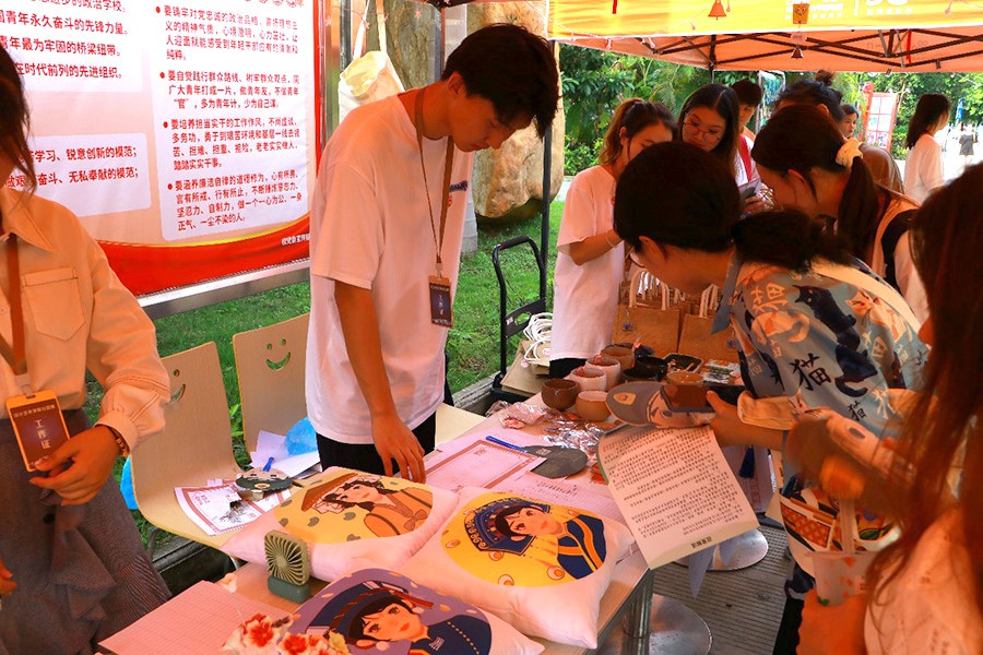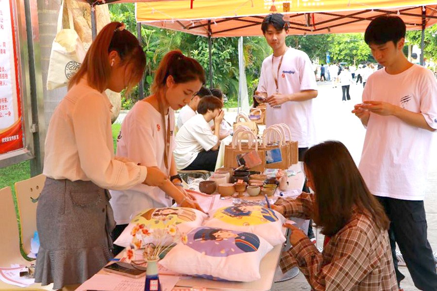 时近仲夏,踩着五月的尾巴,由设计艺术学院分团委和人文教育学院分团委共同举办的“艺”想“添”开主题活动于2022年5月27日圆满结束。此次活动为期两天,以“科技创新创业+以物换物+爱心捐赠”的形式展开,又划分了四个活动专区:手工专区、互动专区、爱心义卖专区和毕业捐赠专区。同时为方便同学们了解活动分区特别设置了咨询台。活动最终的全部收益和售卖后的剩余产品,将以学校和参与师生的名义一起捐往河池市大化瑶族自治县安置区。