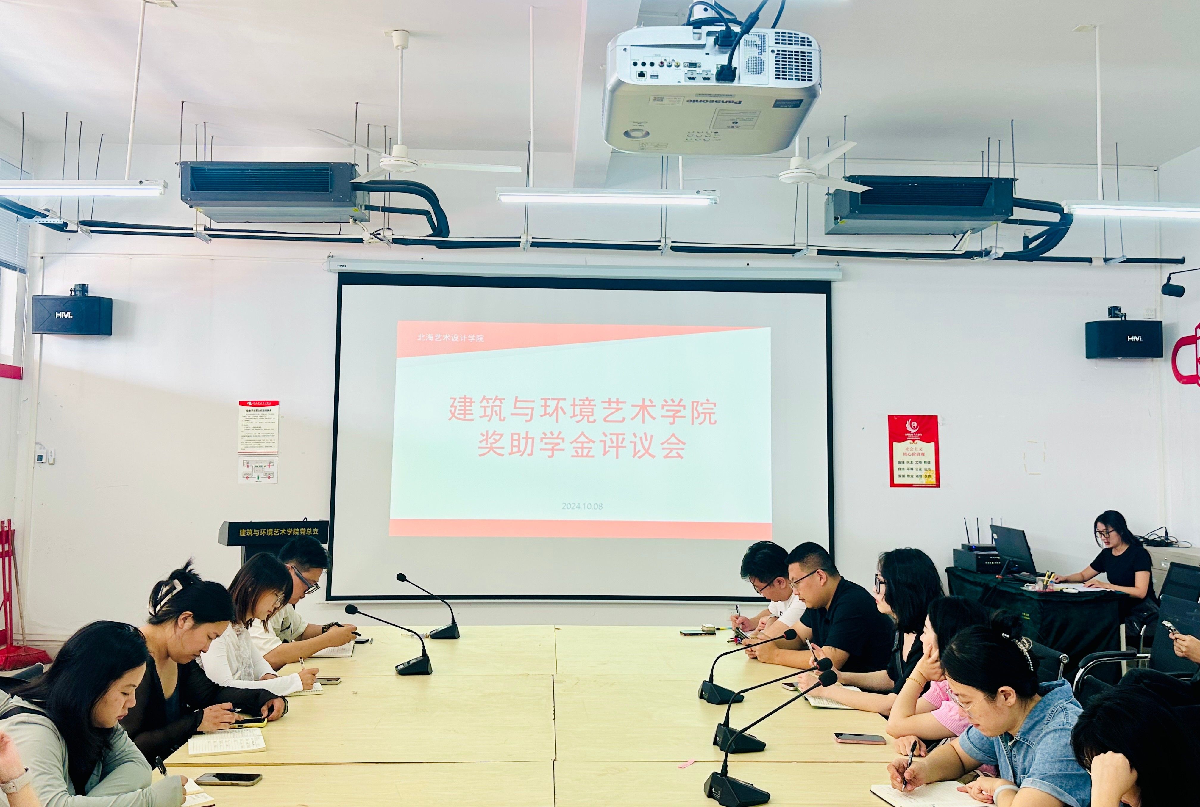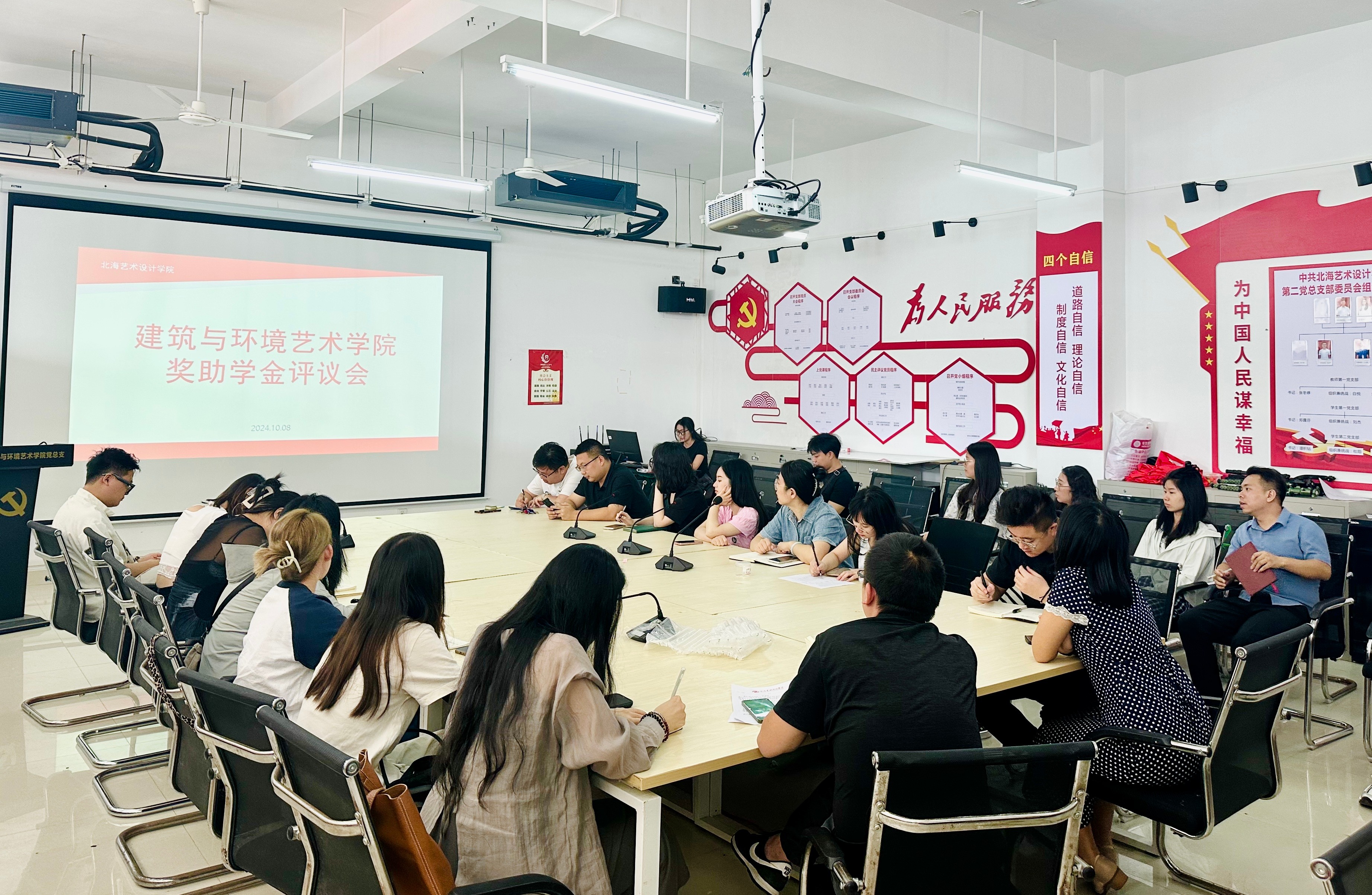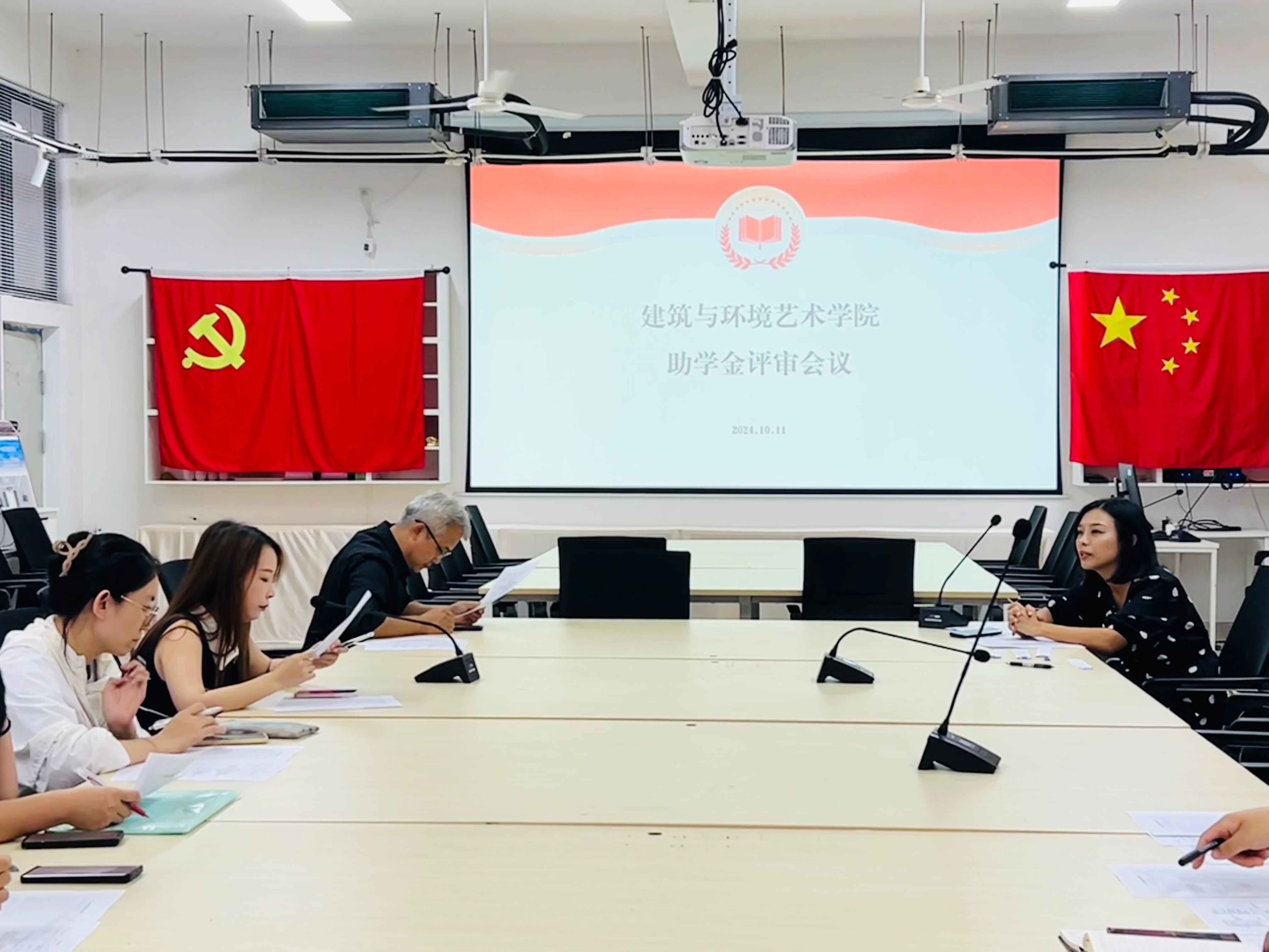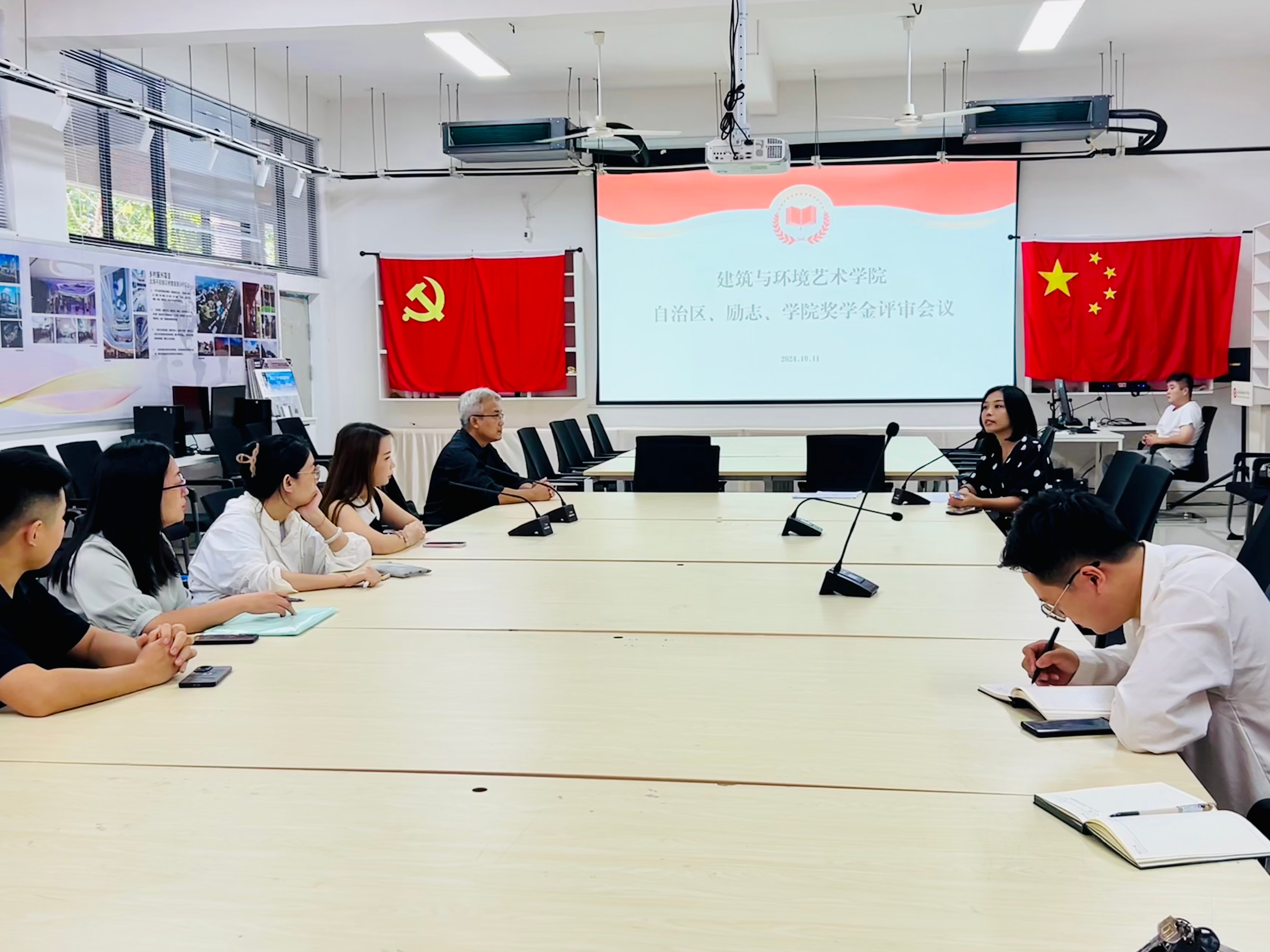 2024年10月08日,我院在公德楼207召开第一次奖助学金评议会,参会成员有建筑与环境艺术学院副院长蔡世伟、党总支副书记曲玥、学工办主任郭溪、负责学生资助工作的人员和课程负责人们。