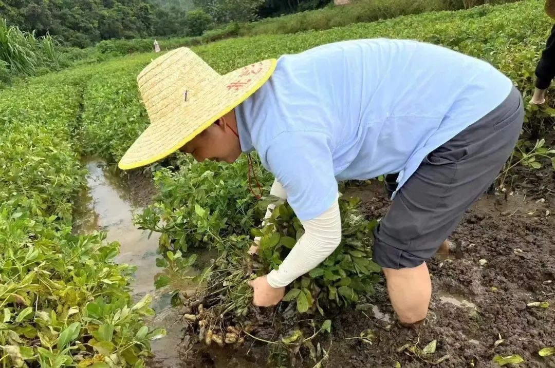 志愿者们分为两队,一队开展了助农采摘打包荔枝,另一队走到田地采摘花生,从源头了解花生的生长,亲身体会当地农民劳作的艰辛。