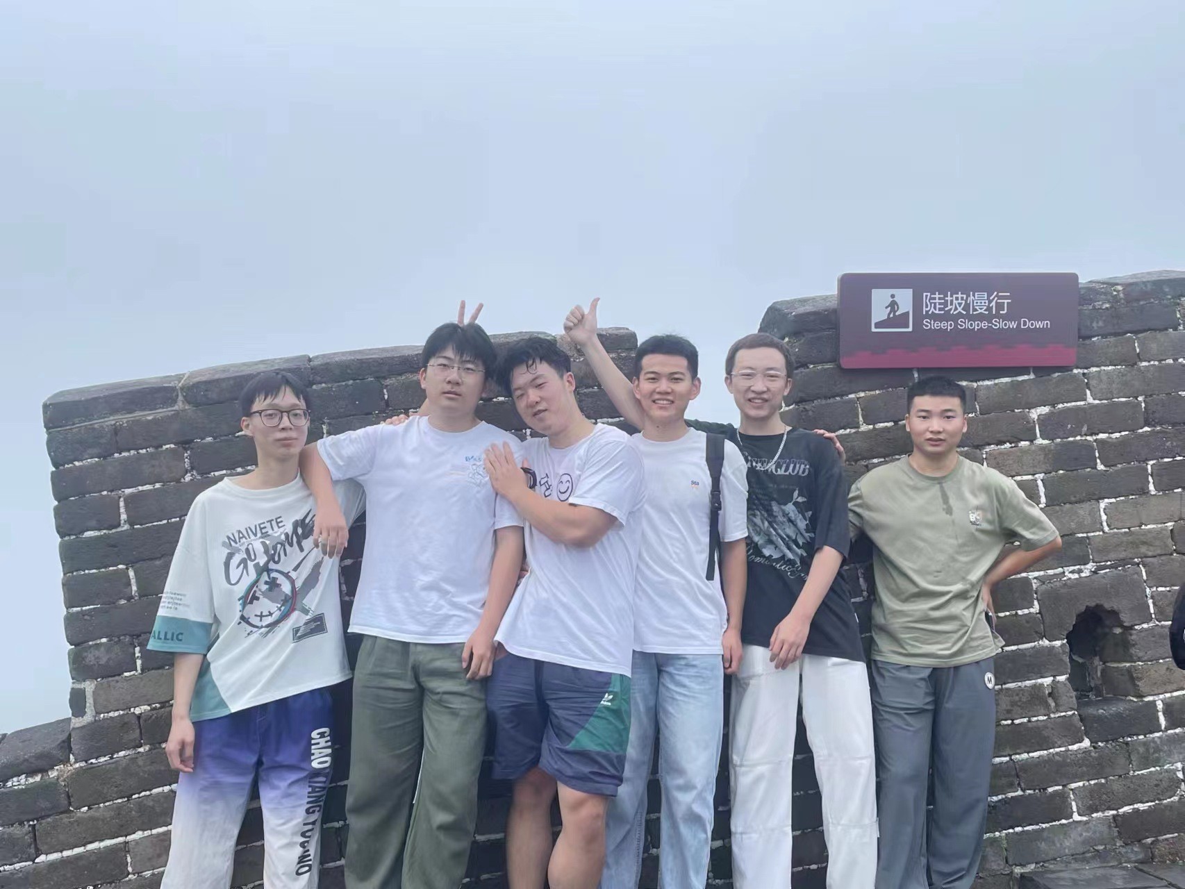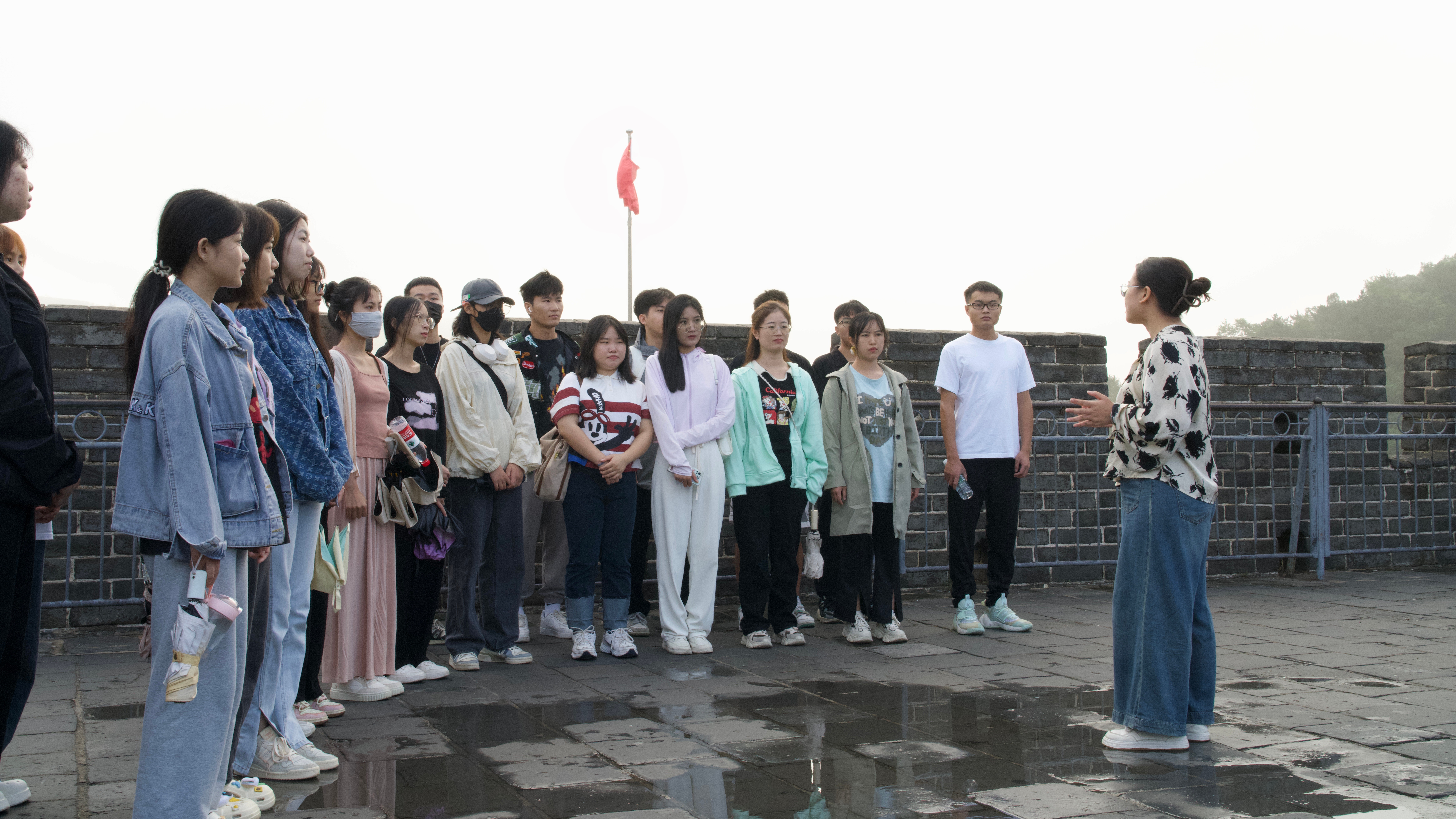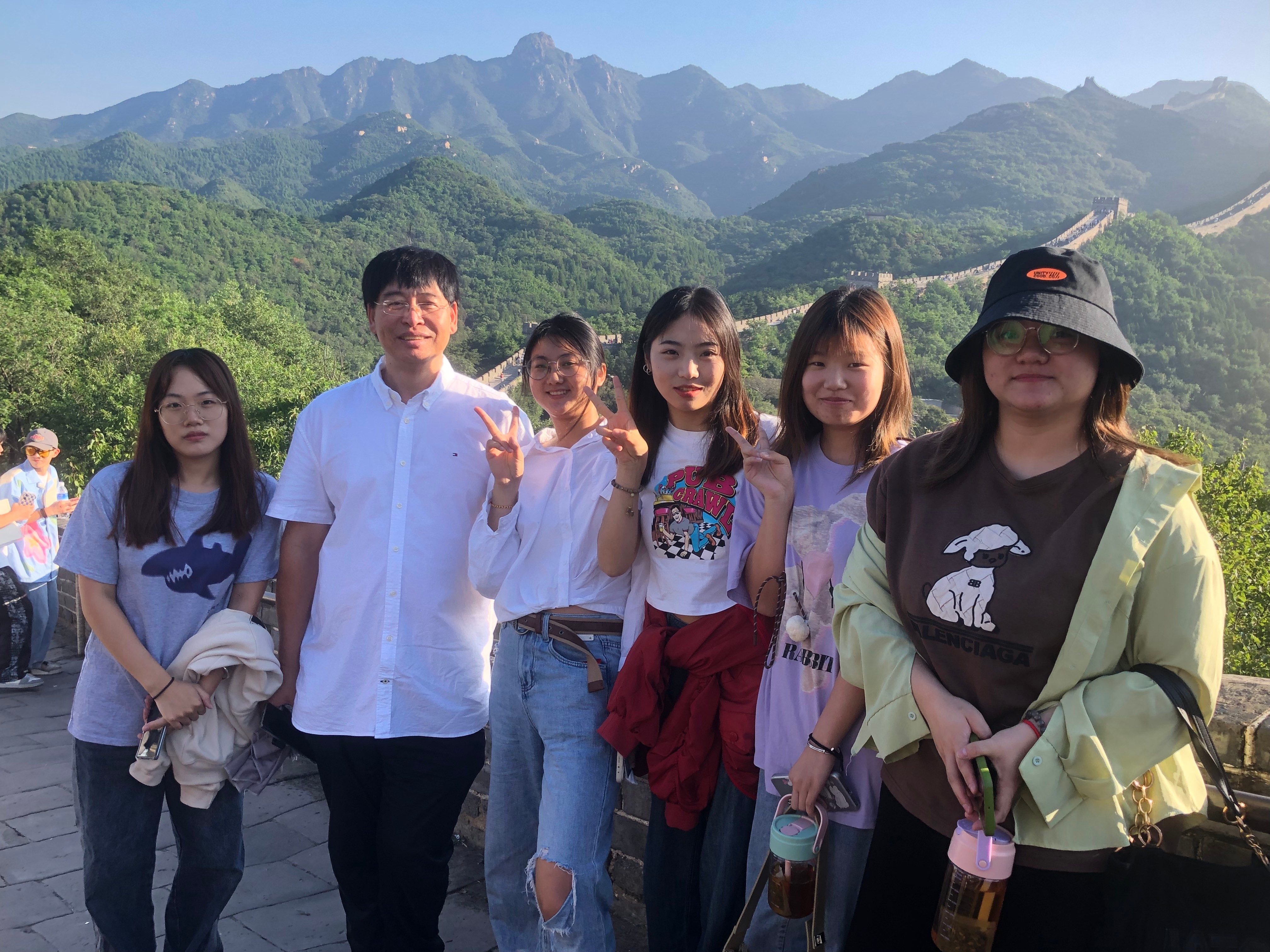 马克思主义学院院长姜献生教授及韦邕青老师在长城上进行思政教育。
