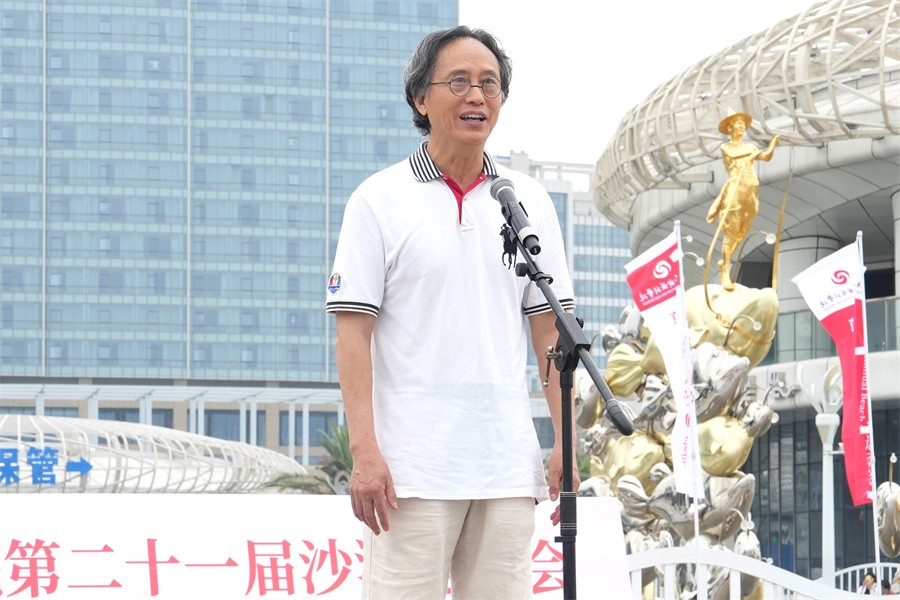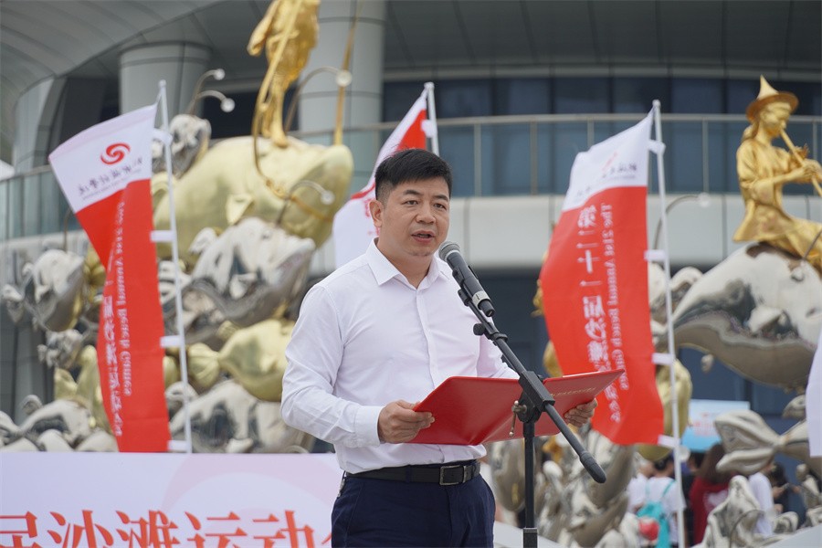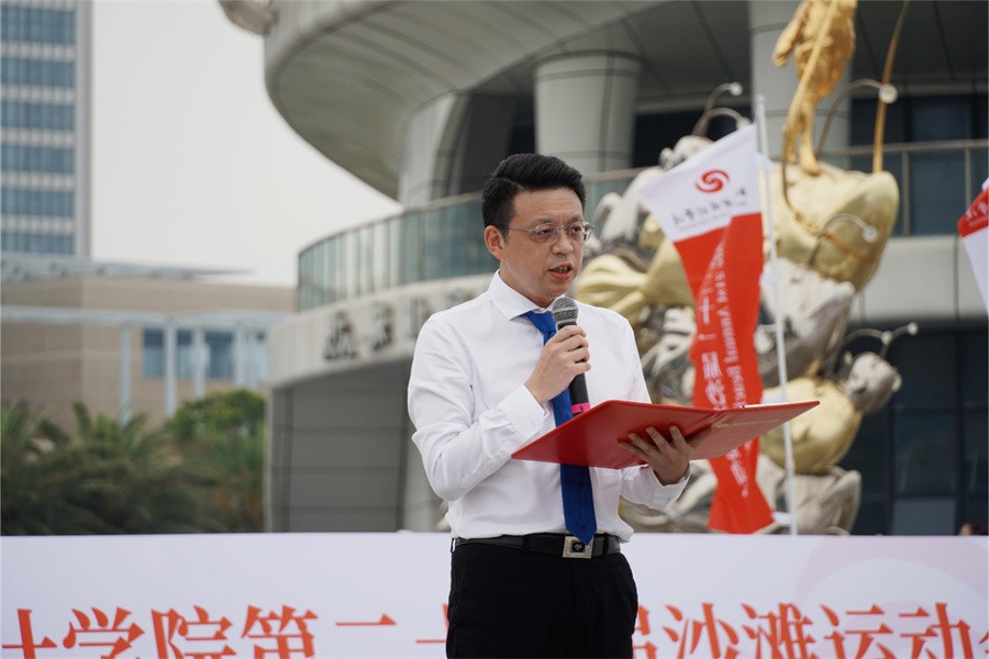 校长卢新华宣布“北海银滩沙雕比赛暨北海艺术设计学院第二十一届沙滩运动会”正式开幕