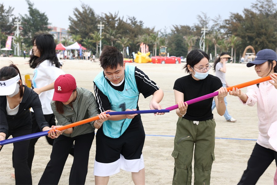 此次运动会设置了沙滩排球、同舟共济、 水到渠成等5项特色运动比赛和艺术沙雕比赛,通过特色的沙滩体育和艺术项目,培养学生“团结第一、健康第一、参与第一”体育精神,彰显师生奋力拼搏、蓬勃向上的青春活力。整个沙滩上体能和技能,艺术和体育交织,满满“趣味竞赛风”,北艺学子们也早早到达沙滩赛场摩拳擦掌,跃跃欲试,一起传递热情、勇气与力量。运动会现场,参赛师生遵守比赛规则,公平公正、团结协作,顽强拼搏,胜不骄,败不馁,赛出了风格,赛出了水平,赛出了友谊。