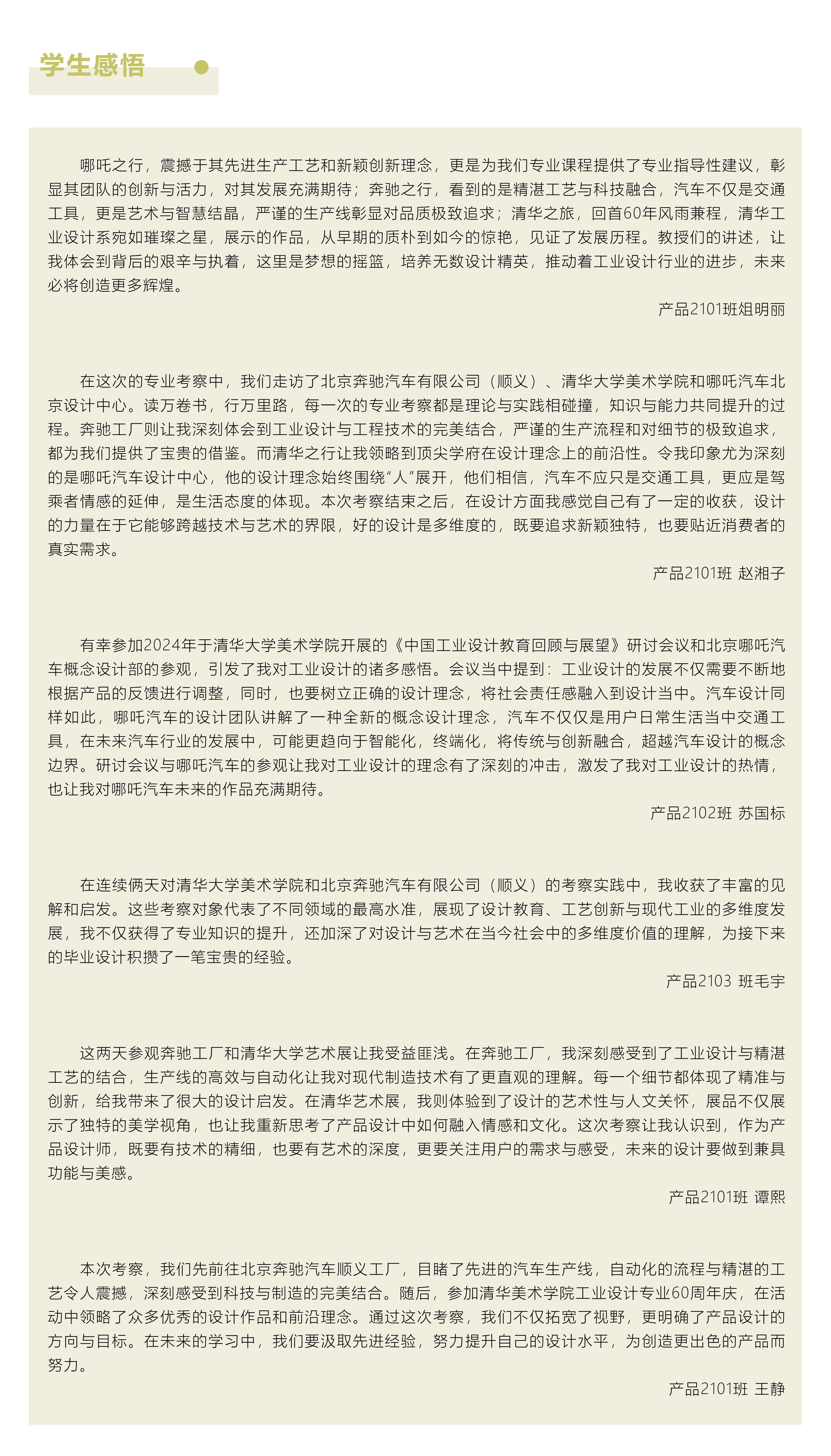 此次在京专业考察活动通过考察实践和专家交流,学生不仅了解行业发展的前沿动态,还体会到设计对社会、科技与人文的深远影响,帮助学生从行业前沿与学术成就中汲取灵感,全方位拓宽设计视野,深度激发创意思维,为学生今后的学习钻研与职业发展奠定了坚实的基础,也为产品设计专业在设计教育领域的改革和创新注入了新的动力。今后,设计艺术学院将持续组织师生开展专业考察活动,深化产教融合、校企合作模式,为学生提供更多与行业接轨、拓展视野的机会。同时也将不断完善课程体系,结合行业需求,推动学科交叉融合,培养具备全球视野、跨学科知识以及创新精神的高素质应用型设计人才,以更好地适应新时代科技与社会变革的需求。