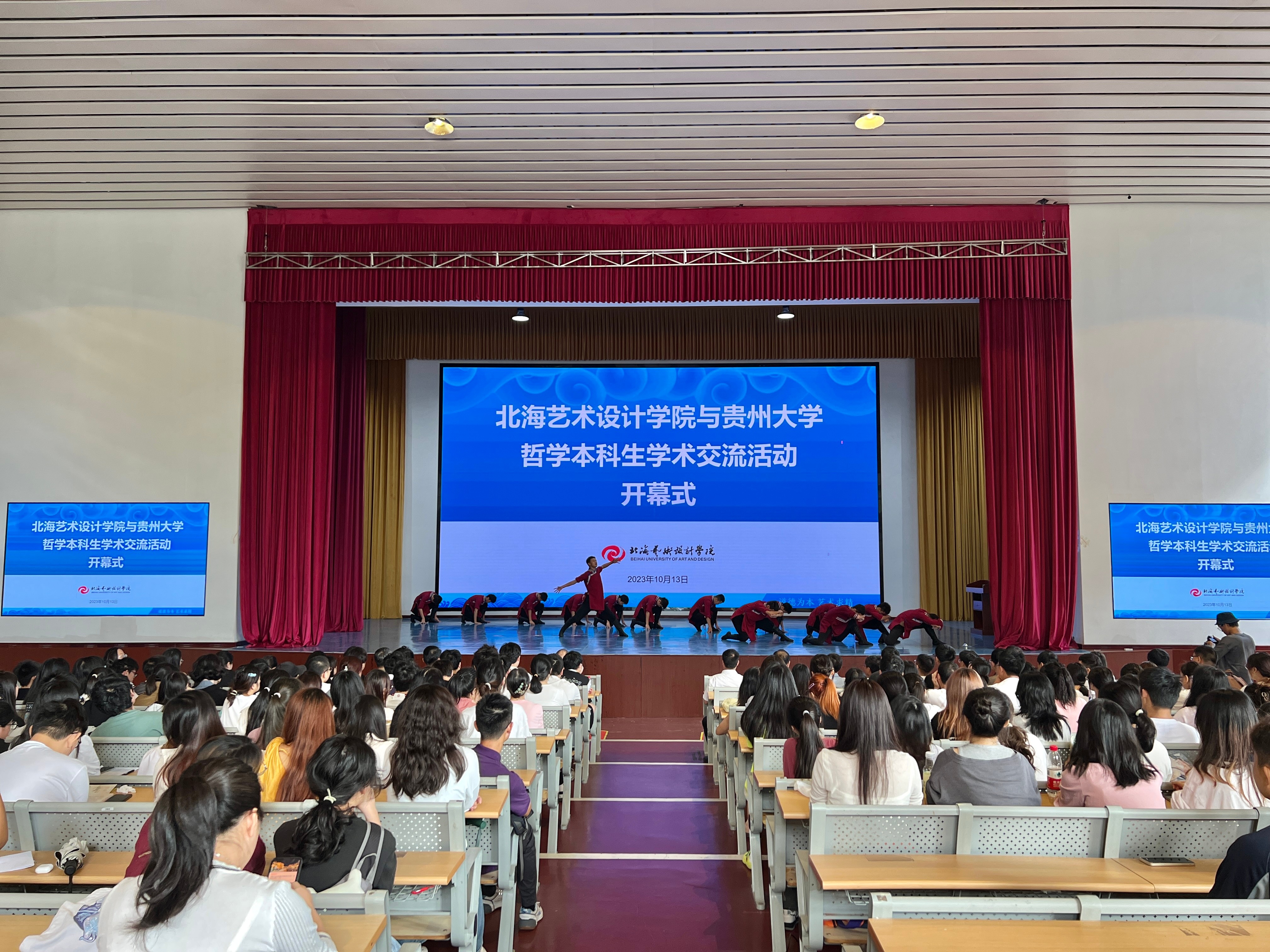 2023年10月13日,北海艺术设计学院与贵州大学哲学专业交流活动开幕式在北海艺术设计学院大礼堂举行。本次开幕式由北海艺术设计学院主办,贵州大学领导和师生受邀出席。