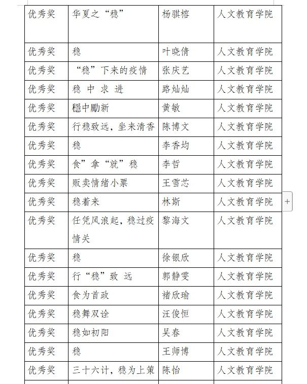 参赛作品中,既有体现传统文化特色的书法作品,又有呈现民族情怀的手工艺品,更有表现当代社会发展格局和抗疫等国情深刻理解的创意作品……可谓异彩纷呈,角逐激烈。充分展现了人文教育学院各专业特色,既能提升学院专业学科建设水准,又能为学生专业能力的拓展和延伸提供良好机会。