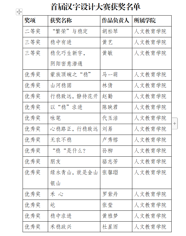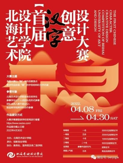 近日,北海艺术设计学院首届汉字创意设计大赛评审工作已全部结束。人文教育学院参赛学生作品脱颖而出,荣获二等奖1名、三等奖2名、优秀奖32名。