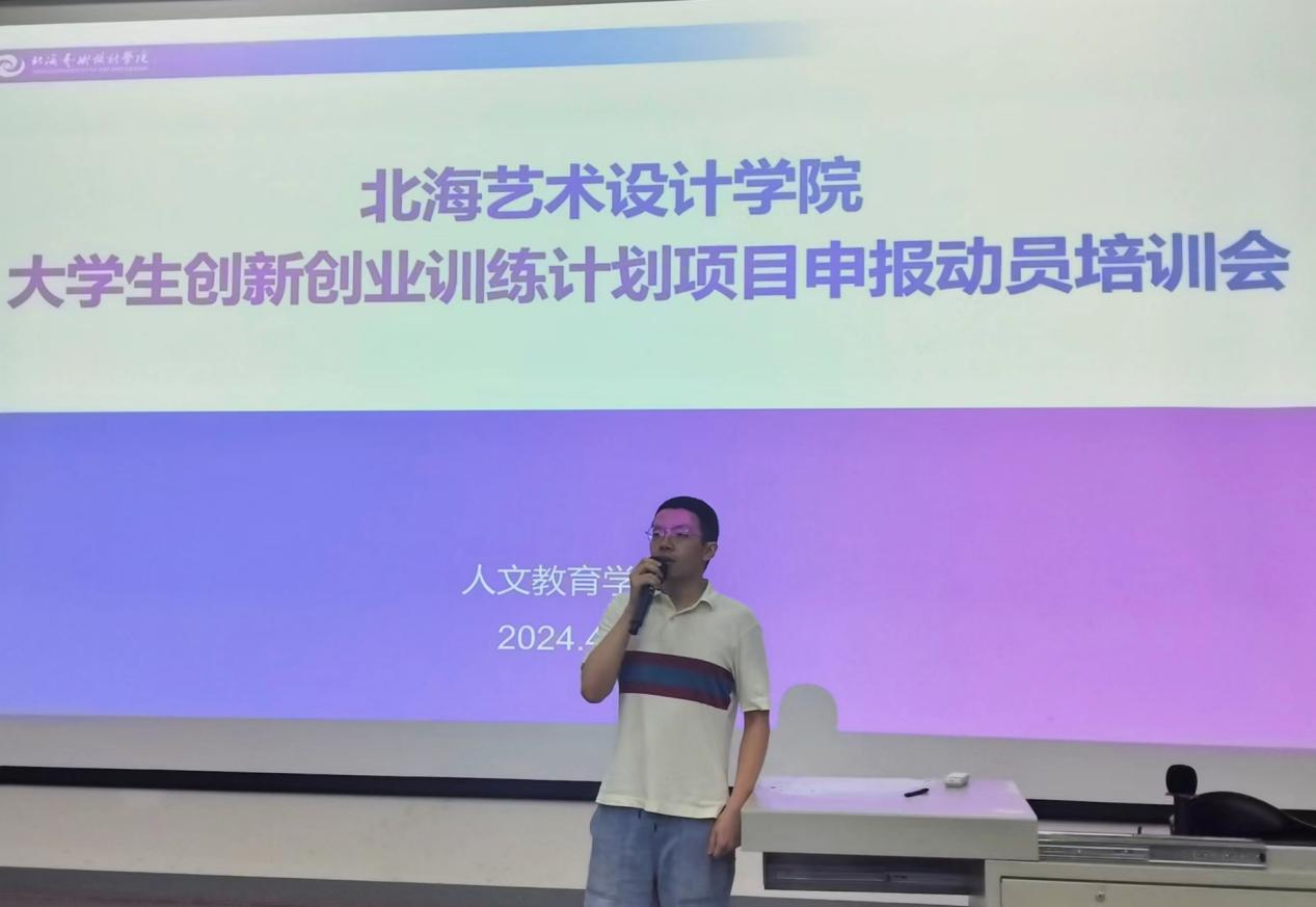 为加强我院学生对大学生创新创业训练计划项目(以下简称:“大创项目”)的认识,增强学生创新创业意识,提高学生大创项目申报成功率,4月21日,人文教育学院在公德楼107教室,召开大学生创新创业训练计划项目申报动员培训大会。2023级汉语言文学专业、哲学专业和汉语国际教育专业全体学生参会。会议由综合办副主任郭建威老师主持。