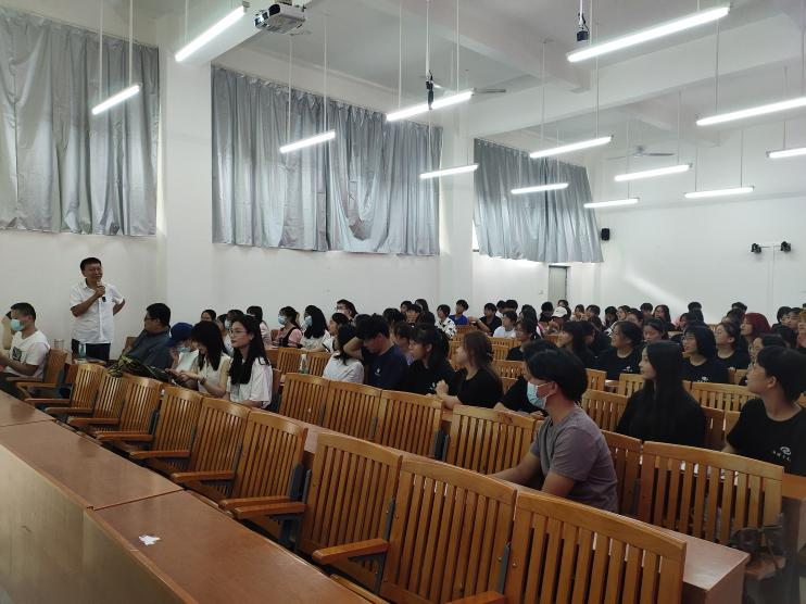 介绍会尾声,汉语言文学教研室副主任姜玮为新生做了题为《这四年,我们该怎么做?》的入学指导小讲座,姜老师提出五个“一”计划:探索并发现适合自己的那一条航路;学一门足以谋生的拿手知识和手艺;读一些真正有价值的好书;拥有一项持续终生的良好爱好;找到交心一生的同路好友。姜老师的入学指导小讲座趣味盎然,介绍会现场笑声不断。
