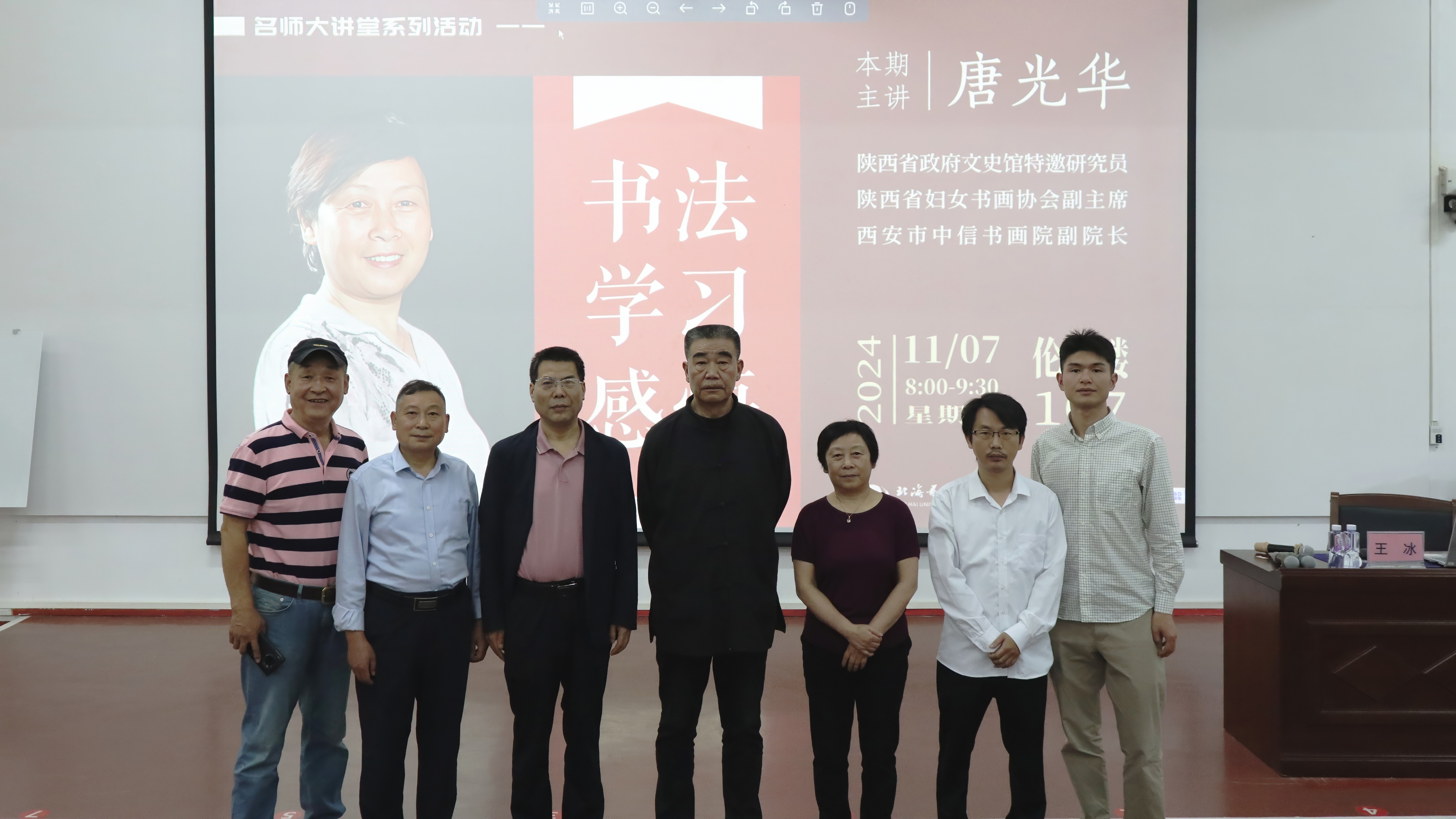 2024年11月7日上午8:00至9:30,备受期待的名师大讲堂系列活动在伦理楼107教室准时举办。本次讲座邀请了陕西省政府文史馆特邀研究员、陕西省妇女书画协会副主席唐光华女士担任主讲嘉宾,为师生们带来了题为“书法学习感悟”的精彩分享。
