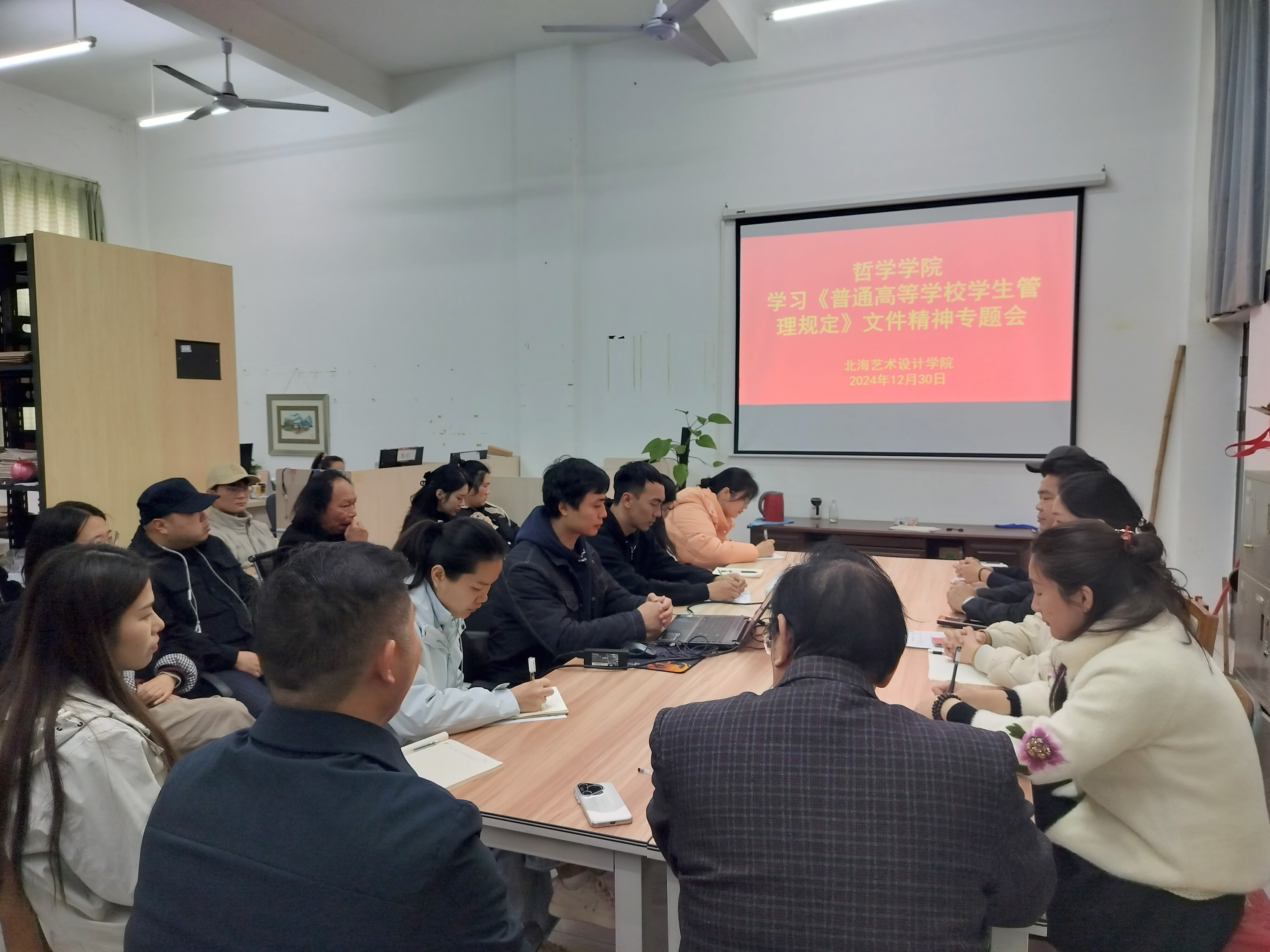 为帮助全体教职工深刻理解《普通高等学校学生管理规定》(教育部令41号)文件精神,推进学校学生管理工作规范化,切实维护学生合法权益和高等教育公平公正,12月30日上午,哲学学院在东校区综合楼104会议室组织全体教职工开展集中学习《普通高等学校学生管理规定》(教育部令第41号)文件精神专题会。会议由我院党支部书记谢伟主讲。