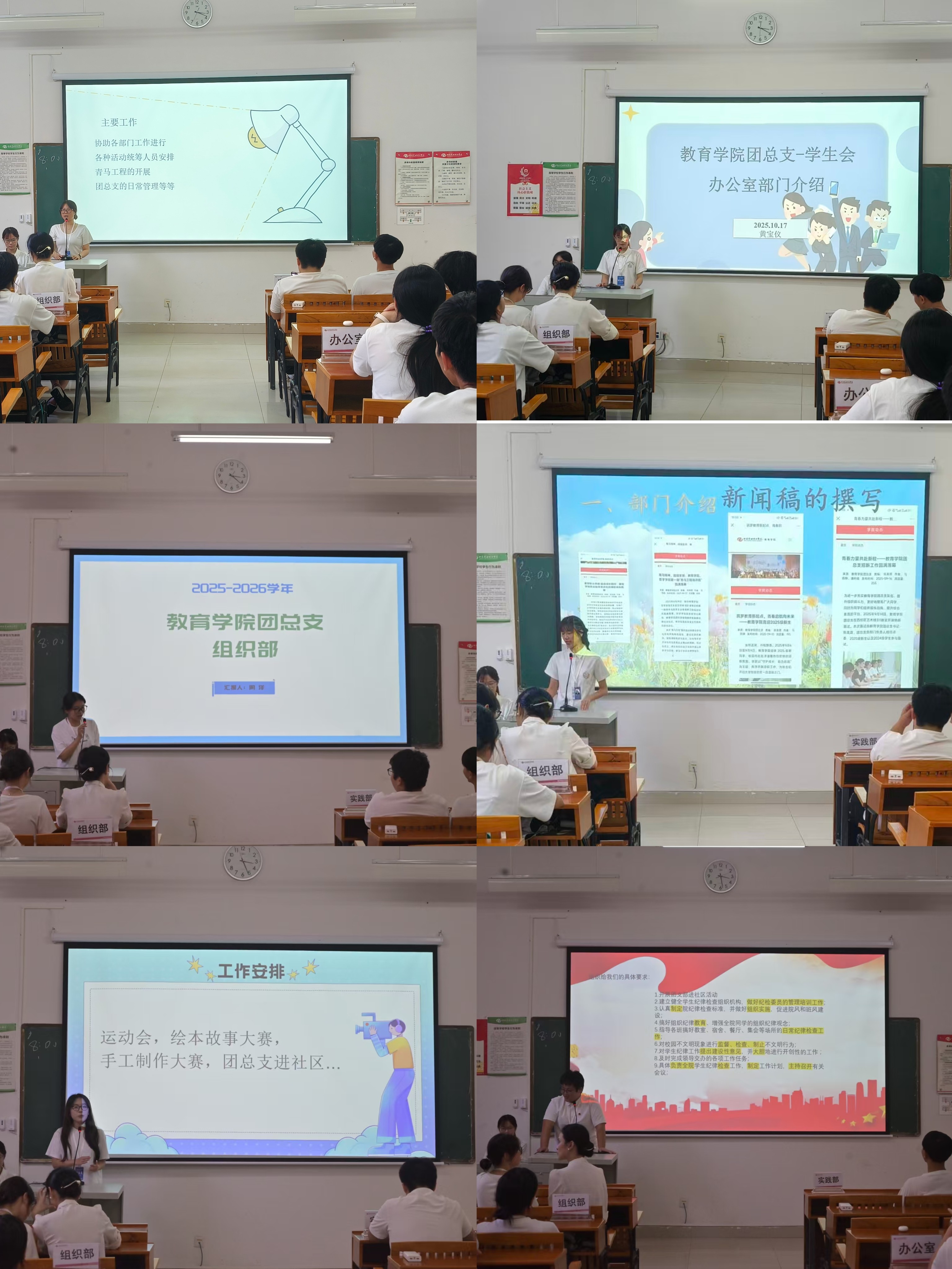 教育学院团总支第一次全体大会圆满落幕高效完成三大关键任务:一是团总支负责人明确新学期团务工作规划与目标,强调围绕“教育赋能青年”主线开展活动;二是各部门代表通过PPT讲解职能分工与人员架构,为成员搭建了解组织、参与工作的桥梁;三是组织规章制度学习,强调日常规则遵守与惩戒条款,强化团员组织意识与纪律观念。