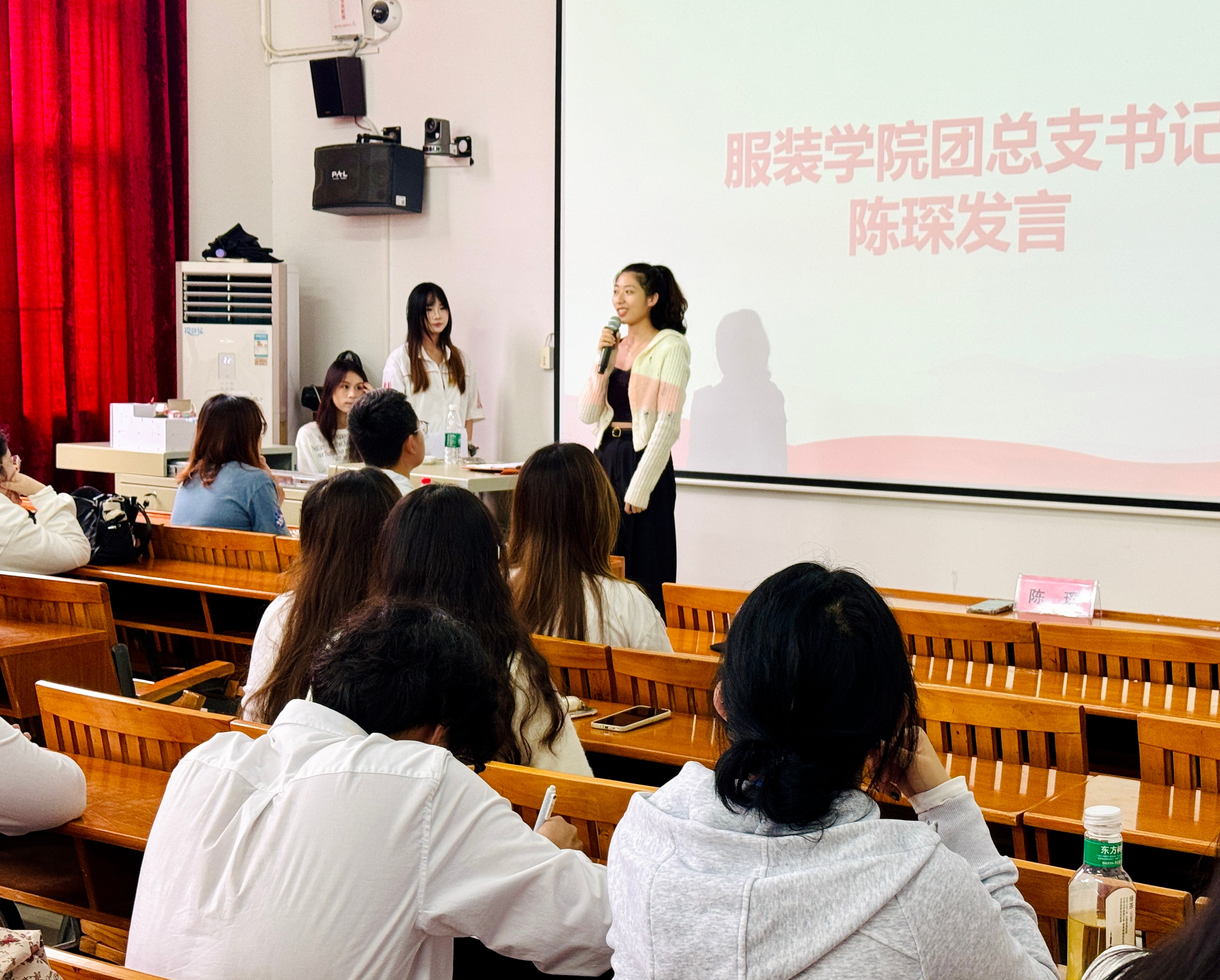 随后,学院分团委办公室、礼仪部、组织部、实践部、宣传部等部门代表依次登台,解码部门职能并公布本学期工作计划。其中,办公室聚焦 “高效统筹”,以完善制度、协调资源为重点,筑牢后勤保障;礼仪部将以专业形体训练与礼仪素养培养为抓手,在各类活动中展现服装学院良好形象;组织部深耕 “青马工程”“支部进社区” 等品牌项目,推动思想引领与组织建设双向发力;实践部主打 “创意活动 + 公益行动”,计划通过学科竞赛、志愿服务等载体,为同学们搭建实践成长平台;宣传部以 “多元传播” 为目标,依托新媒体矩阵与线下宣传渠道,讲好服装学院学生故事。