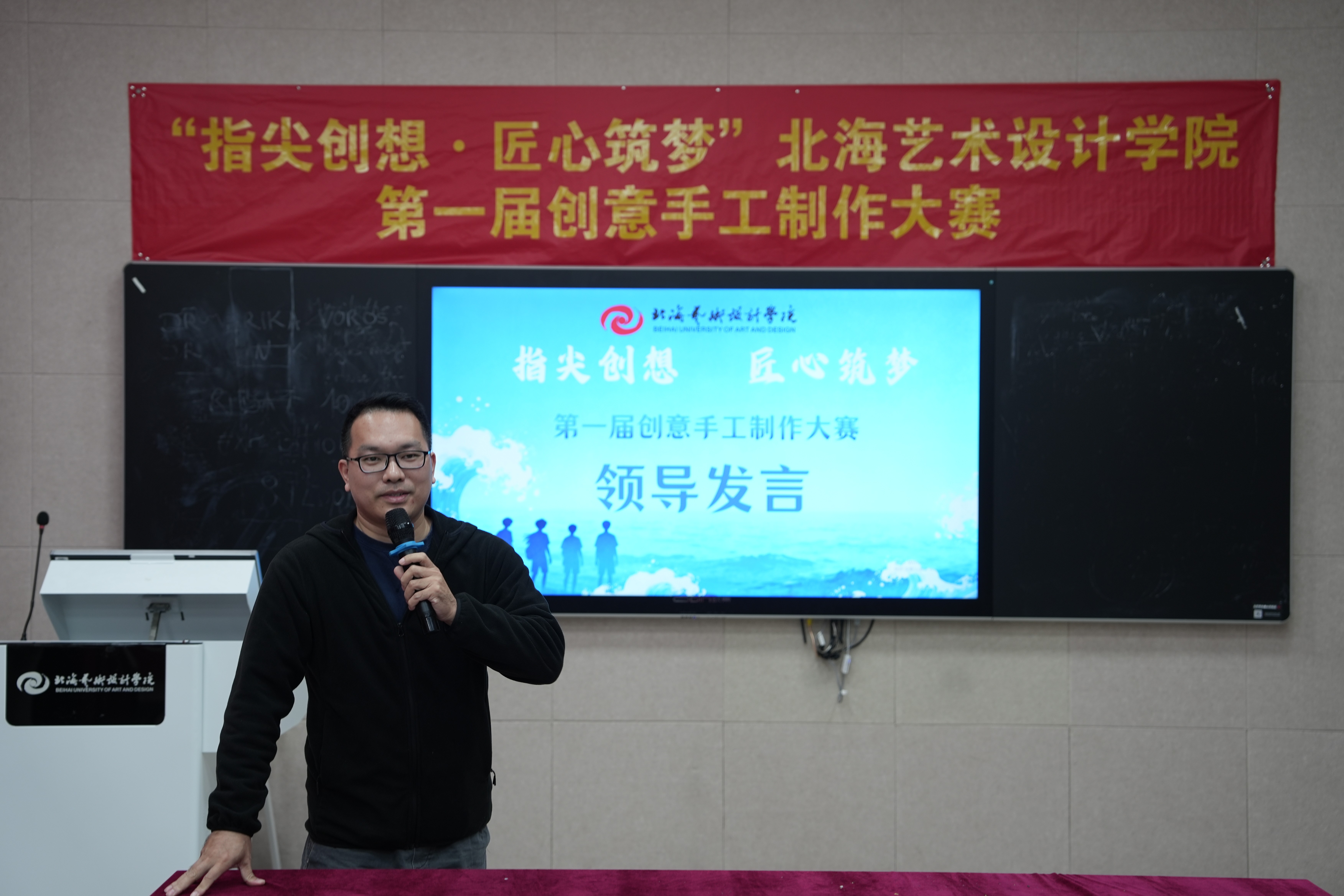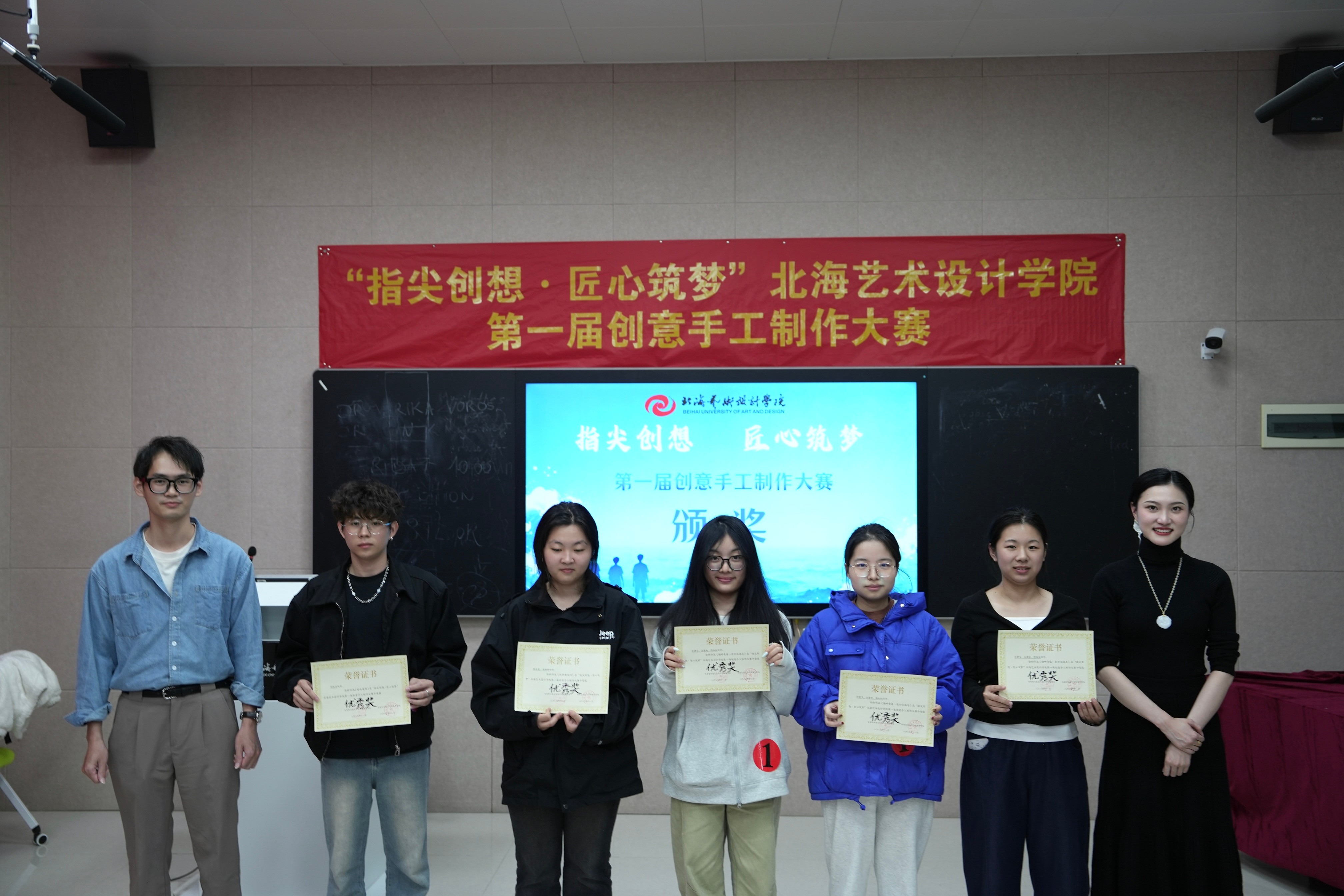 进一步提高我校学生实践创新能力,推动传统手工艺技艺与现代设计思维深度融合,搭建青年学子艺术才华展示与竞技平台11月21日共青团北海艺术设计学院委员会主办教育学院承办的指尖创想 匠心筑梦北海艺术设计学院第一届创意手工制作大赛决赛在西校区图书馆506智慧教室顺利举行。教育学院院长熊秀峰、副院长周劲志、书法学院副院长李家琪,以及各二级学院分团委书记出席决赛现场。美术学院创新创业工作负责人韩洋、教育学院张雨悦老师、马克思主义学院张鸿悦老师应邀担任决赛评委。